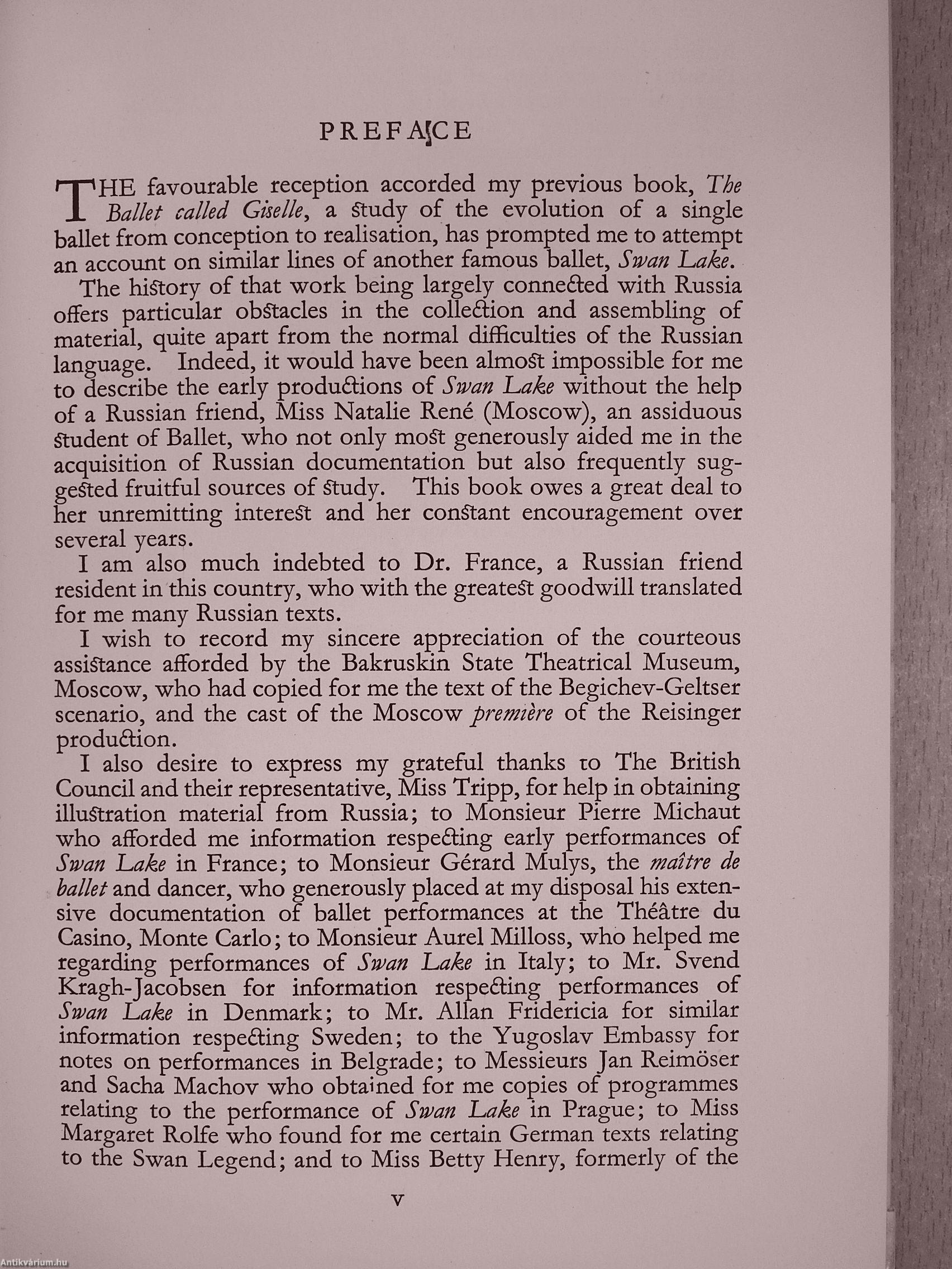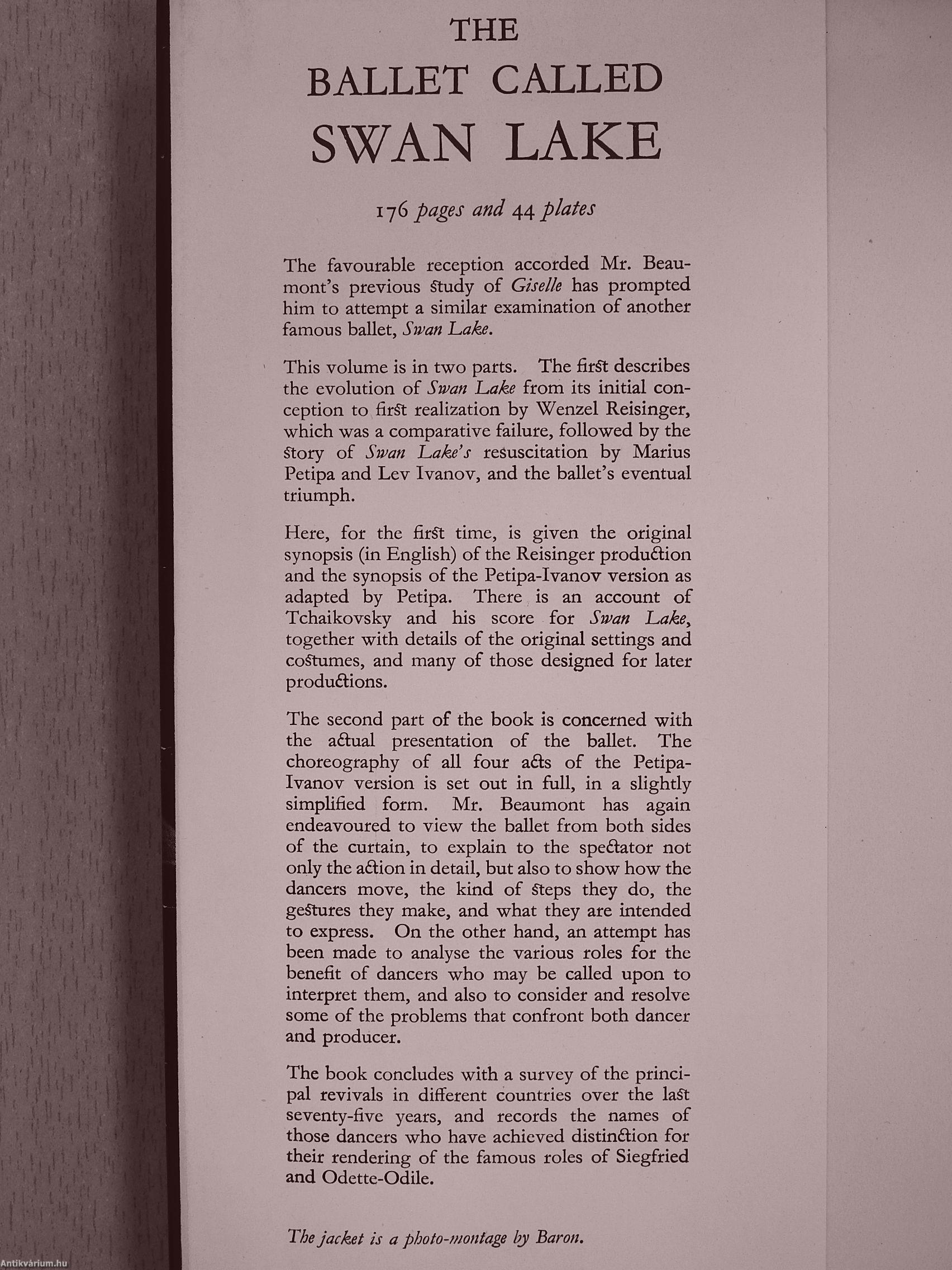 Szerző által dedikált példány. Első kiadás. The Ballet called Swan Lake. / A balett, amit hattyúk tavának hívtak. Írta: Cyril W. Beaumont.