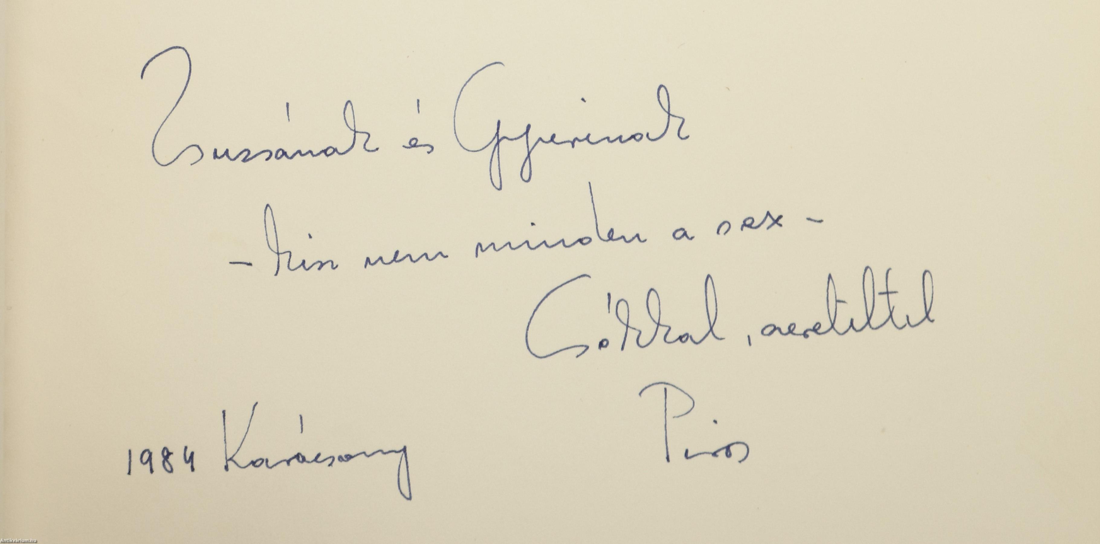A címlapon az illusztrátor, Szántó Piroska tollal beírt, névre szóló dedikációja olvasható: "Zs.-nak és Gy.-nak – hisz nem minden a sex – Csókkal, szeretettel Piros 1984 Karácsony".