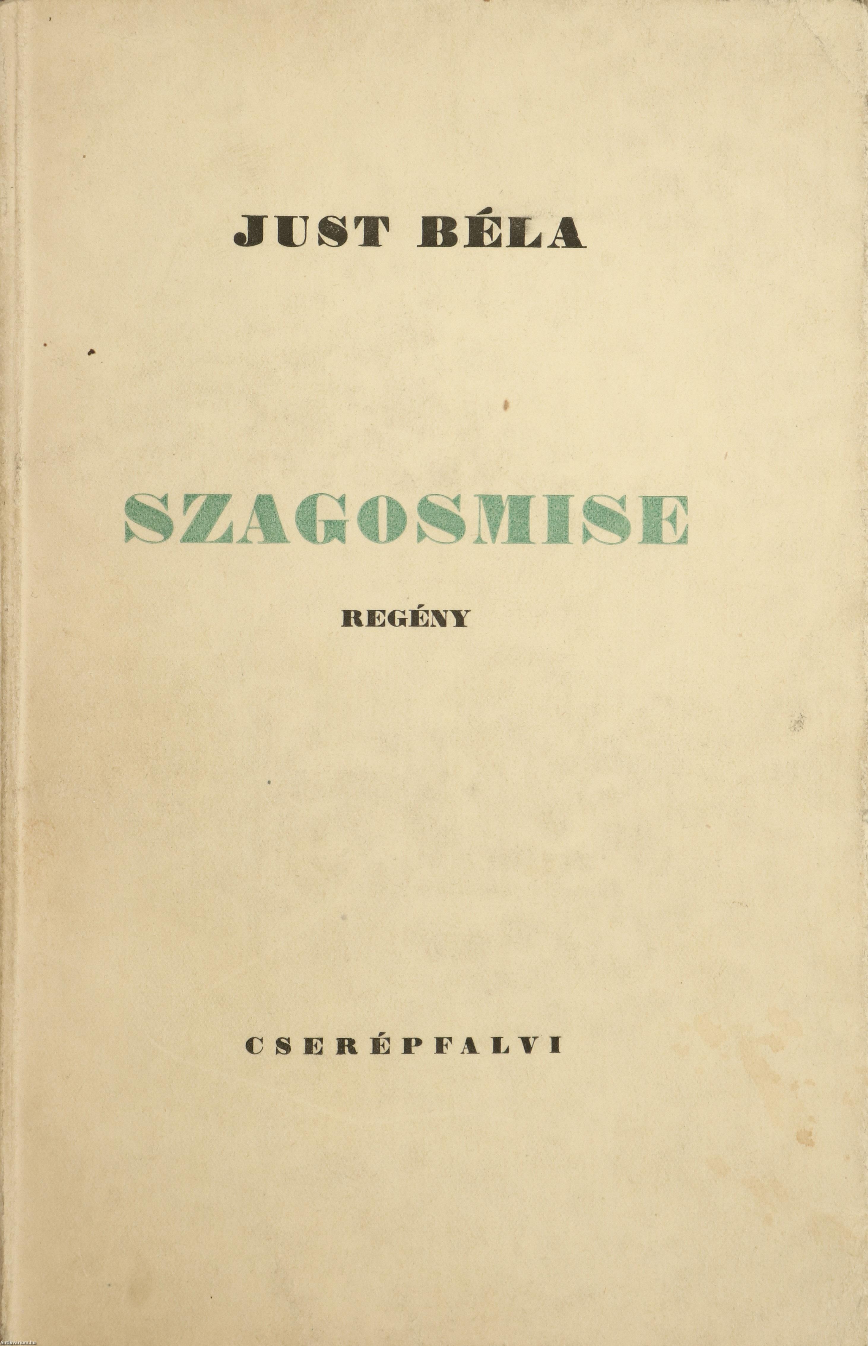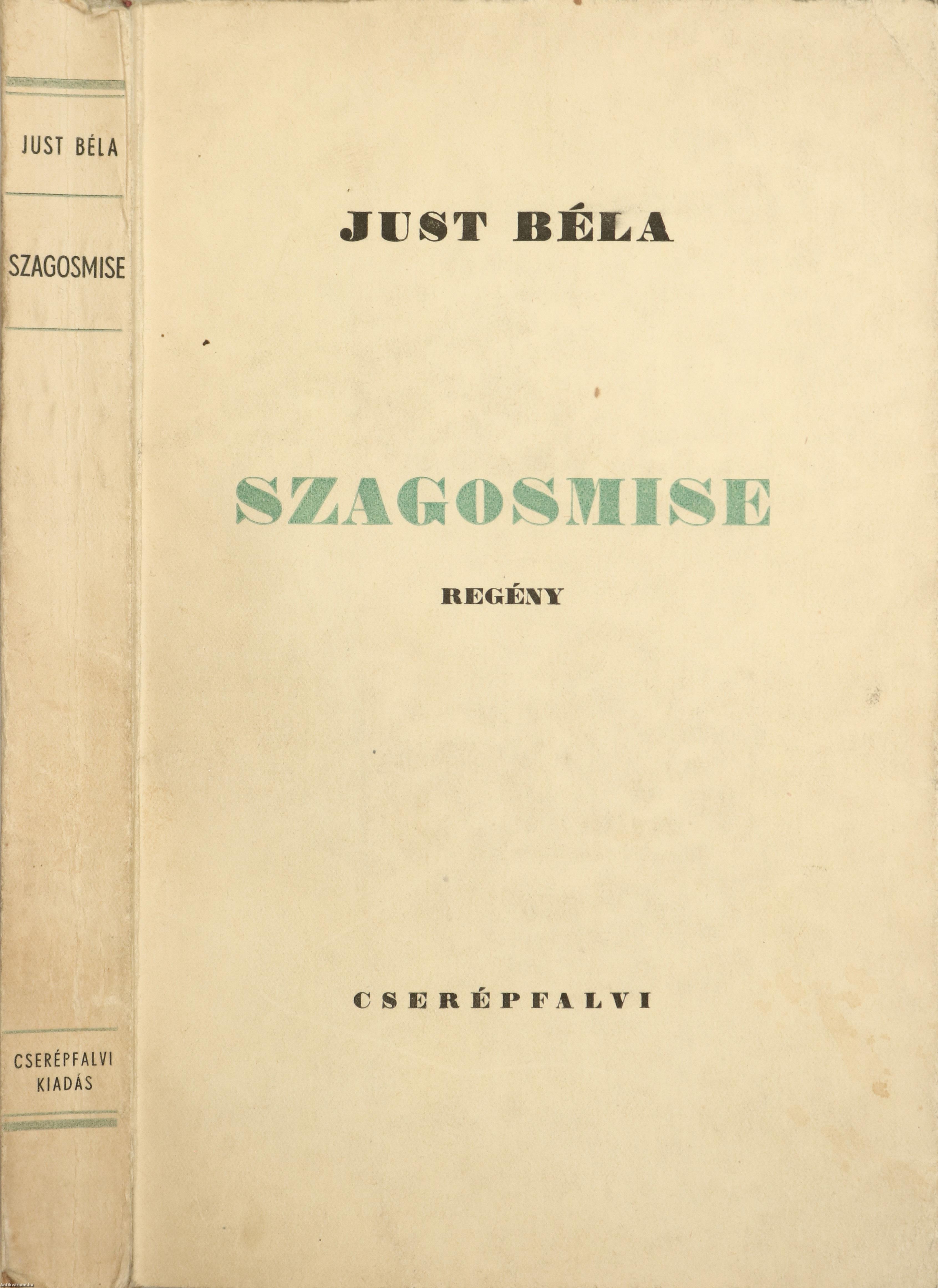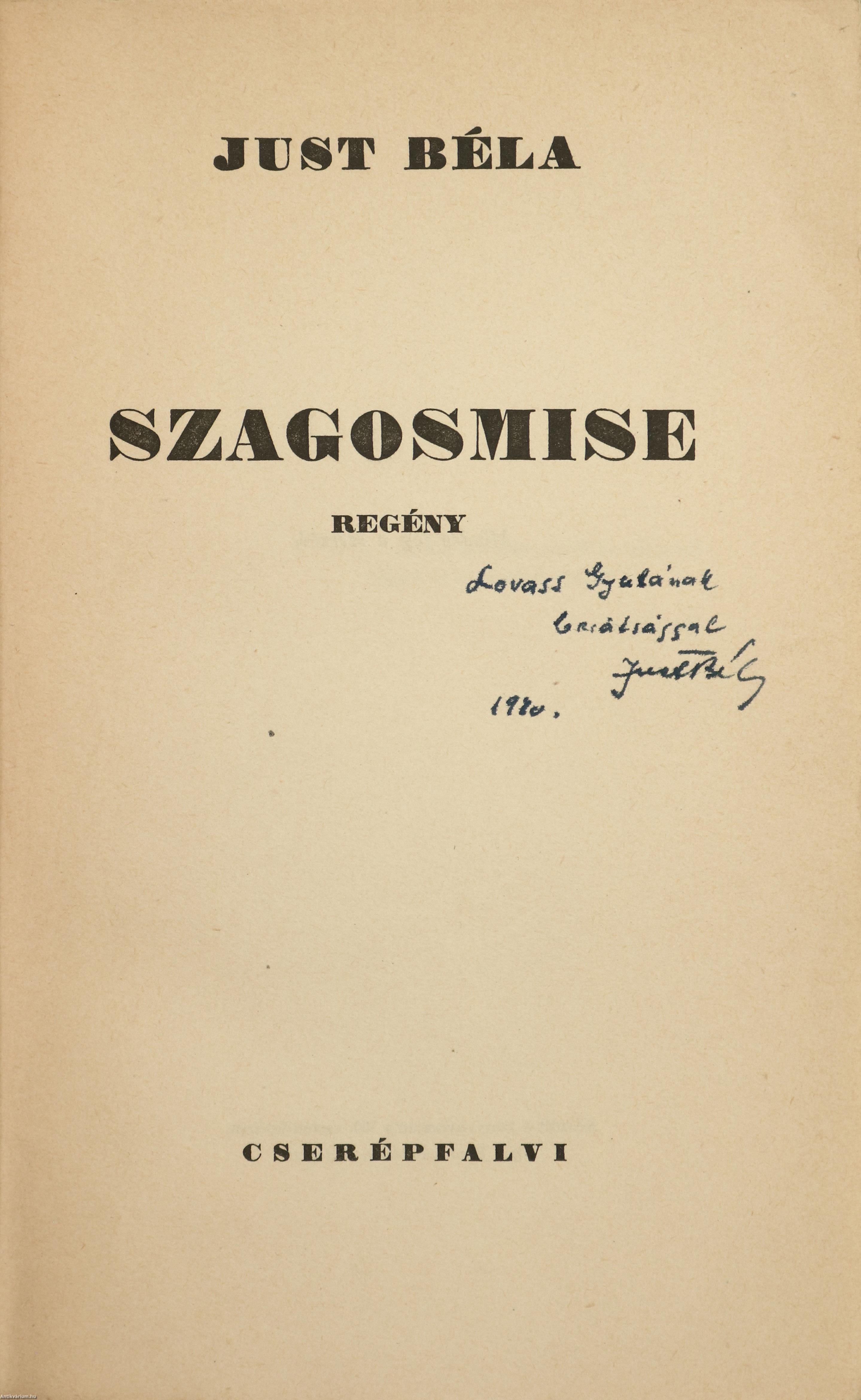 Szerző által dedikált példány. Első kiadás. Szagosmise. Regény. Írta: Just Béla.