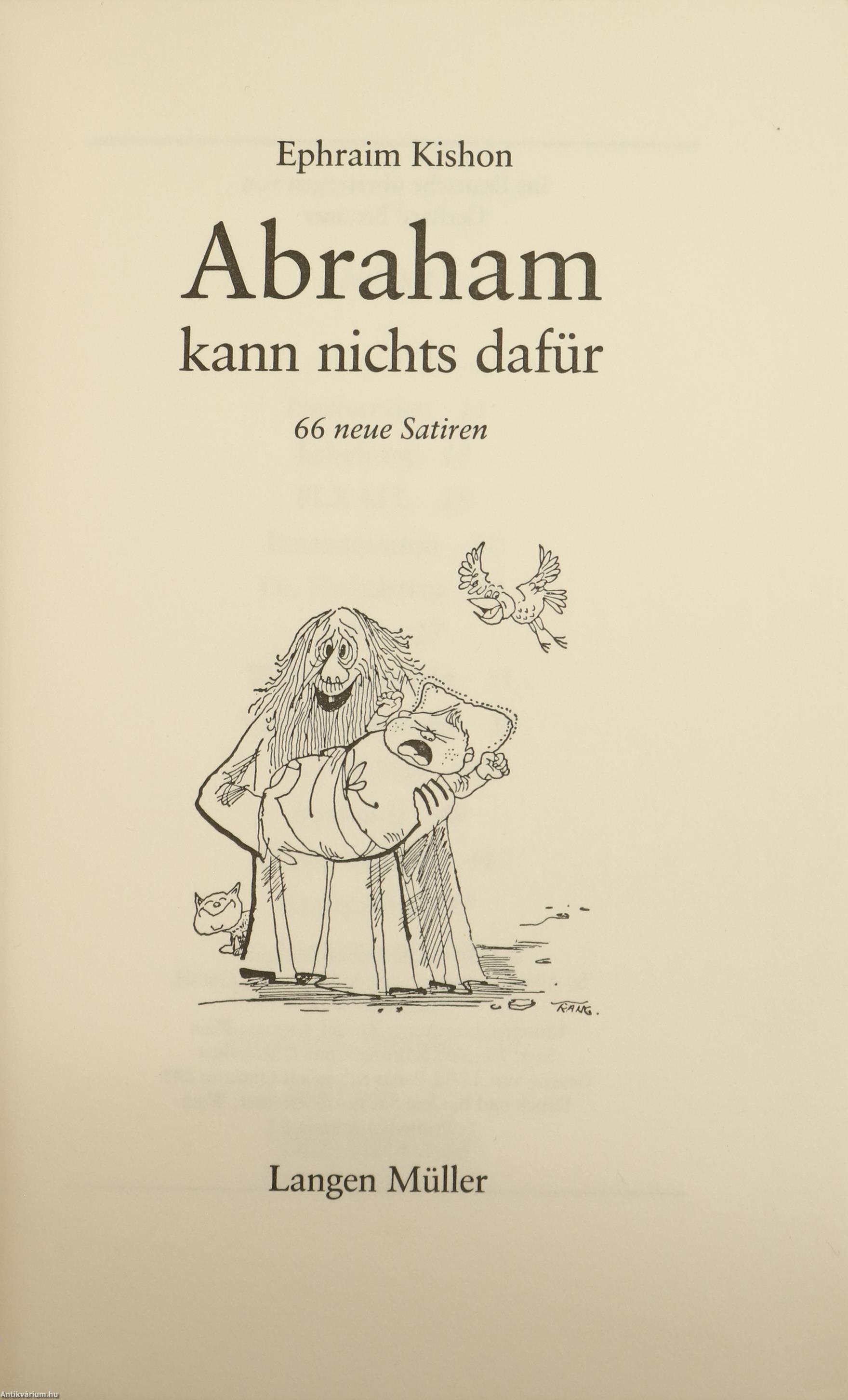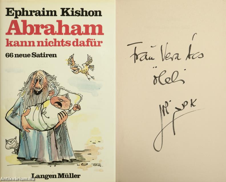 Szerző által dedikált példány. Abraham kann nichts dafür. 66 neue Satiren. / Ábrahám nem tehet róla. 66 új szatíra. Írta: Ephraim Kishon /Kishont Ferenc/. Németre fordította: Gerhard Bronner.