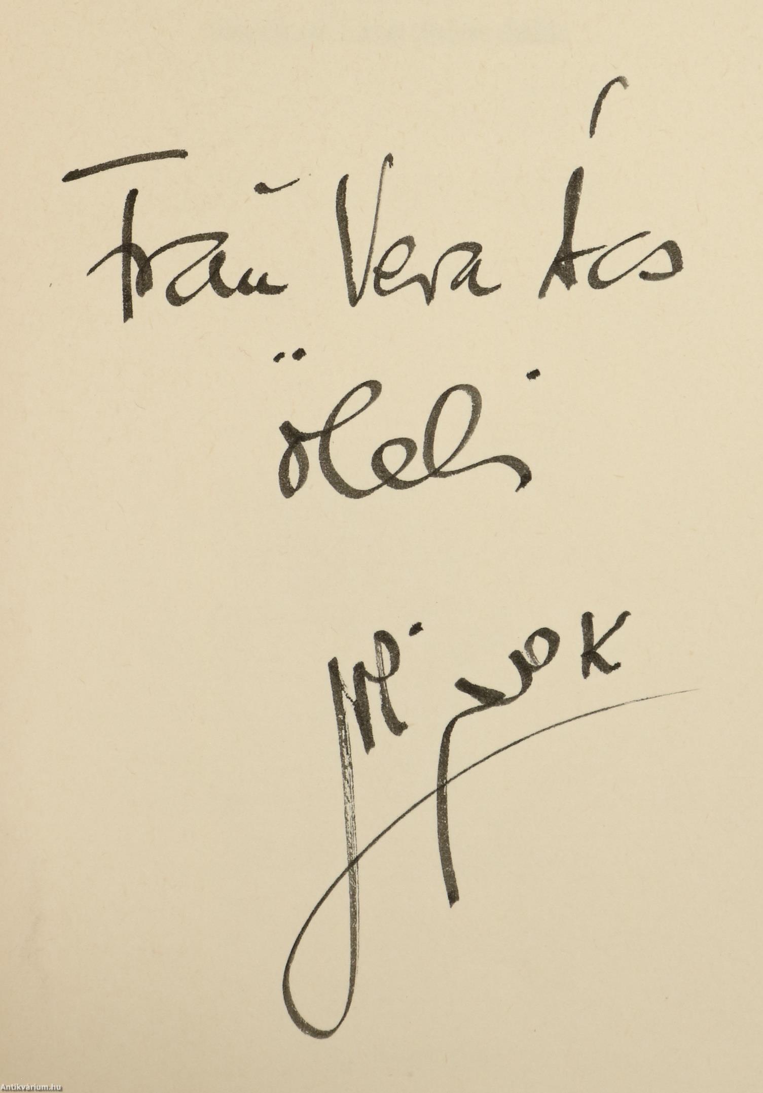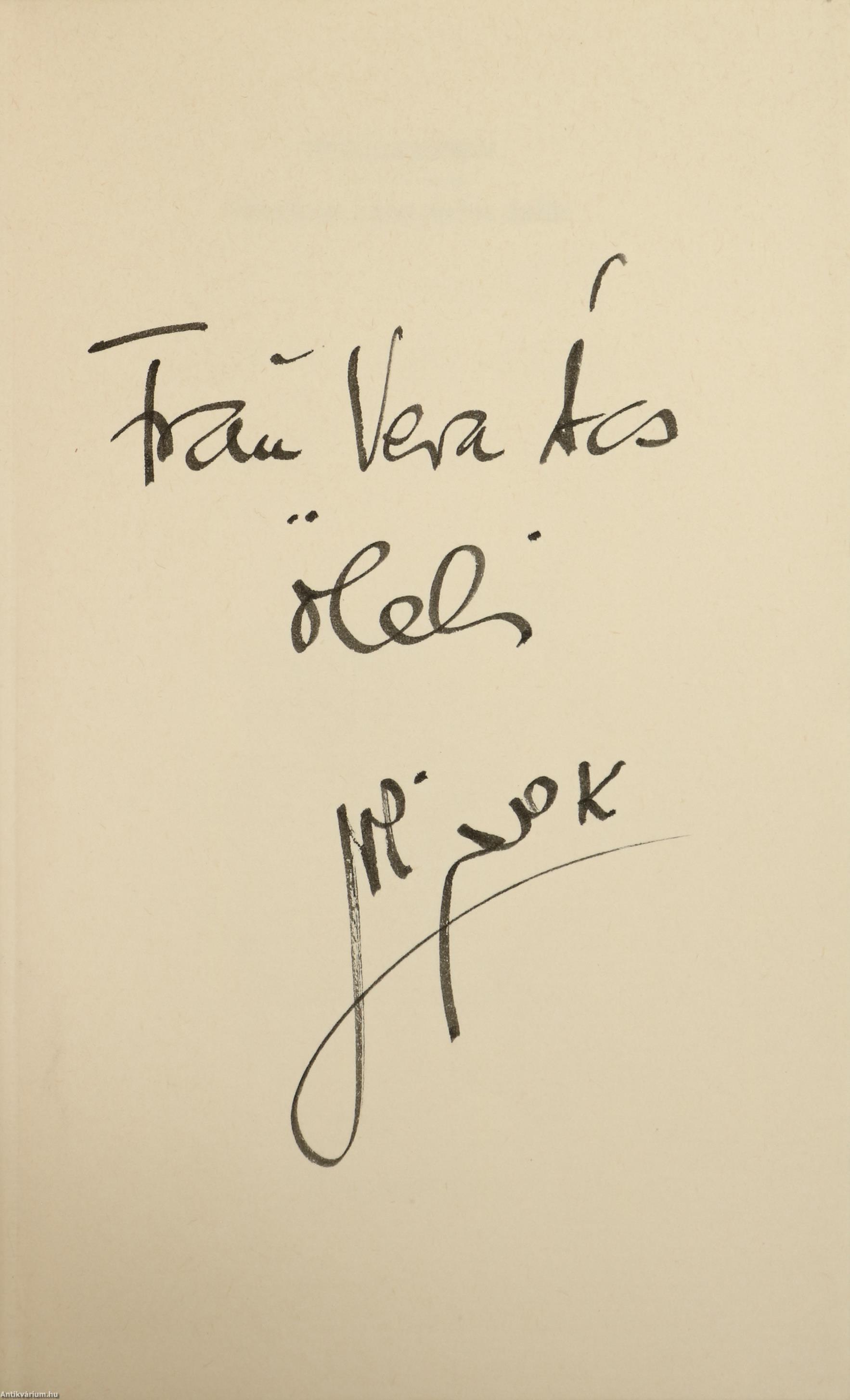A kötet előzéklapján a szerző, Ephraim Kishon névre szóló dedikációja olvasható: "Frau V. Á. öleli Ephraim Kishon".