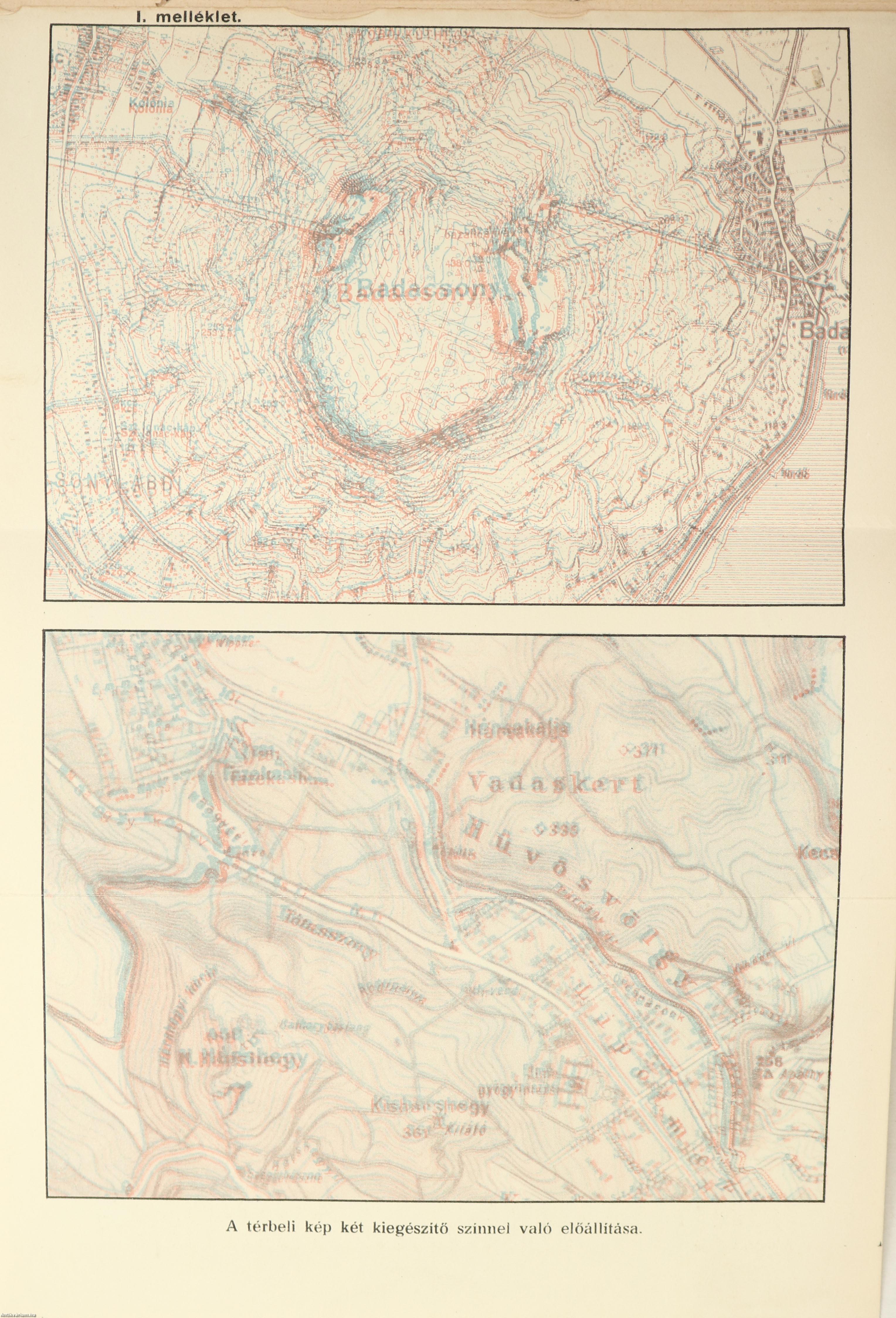 Számos fekete-fehér, szöveg közti térképpel, vázlattal és ábrával, valamint 1 kihajtható anaglif [sztereoszkopikus 3D-látvány megjelenítésére alkalmas] térképpel és a hozzá tartozó mellékletként egy kétszínű lencsével bíró papír szemüveggel. Nyomtatta az "Élet" Irod. és Nyomda Rt., Budapesten. A címfedélen ceruzával írt, régi tulajdonosi bejegyzés látható.