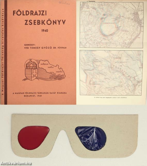 Temesy Győző, vitéz: Földrajzi zsebkönyv 1940 (Tiltólistás kötet) (Anaglif térképmelléklettel és a hozzá tartozó, eredeti szemüveggel!)