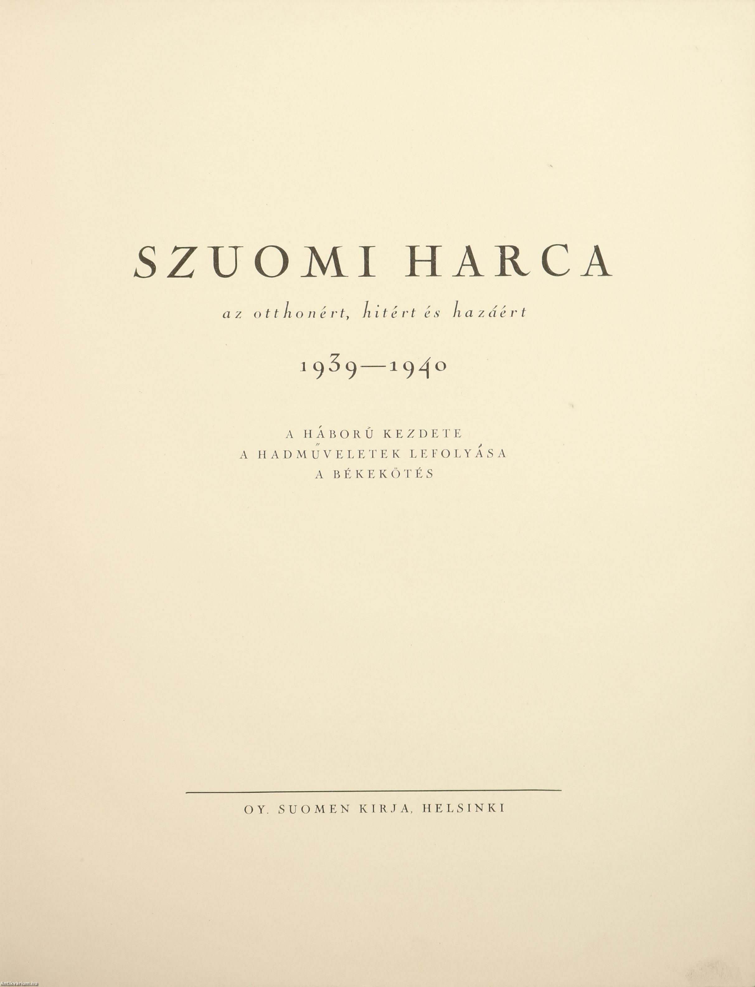 Első magyar nyelvű kiadás. Szuomi harca az otthonért, hitért és hazáért 1939-1940. A háború kezdete, a hadműveletek lefolyása, a békekötés. Szerkesztették: J. O. Hannula, Birger Fagerström, Börje Sandberg.