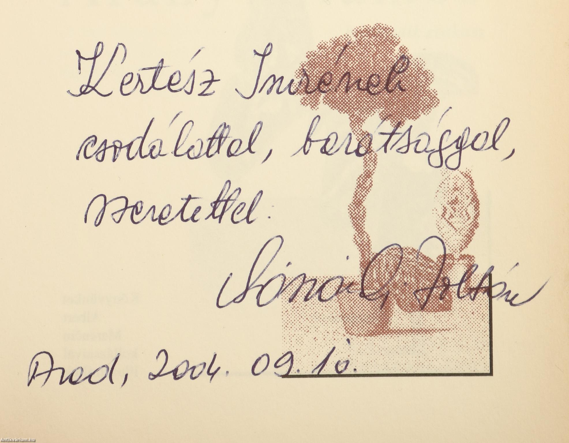 Kiadói fűzött kemény papírkötésben lévő példány feliratos, illusztrált címfedéllel, feliratos könyvgerinccel, rövid versrészletet tartalmazó hátlappal, tiszta, szép belívekkel, hiánytalan, jó állapotban, feliratos, illusztrált, fülszöveggel és a szerző színes fotójával ellátott, jó állapotú kiadói borítófedélben.