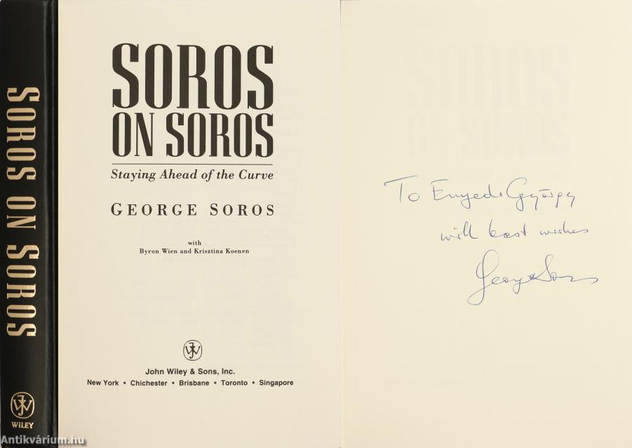 Soros György által dedikált példány. Első kiadás. Soros on Soros. Staying Ahead of the Curve. George Soros with Byron Wien and Krisztina Koenen. [A könyv hazánkban Én vagyok a Soros címen jelent meg.]