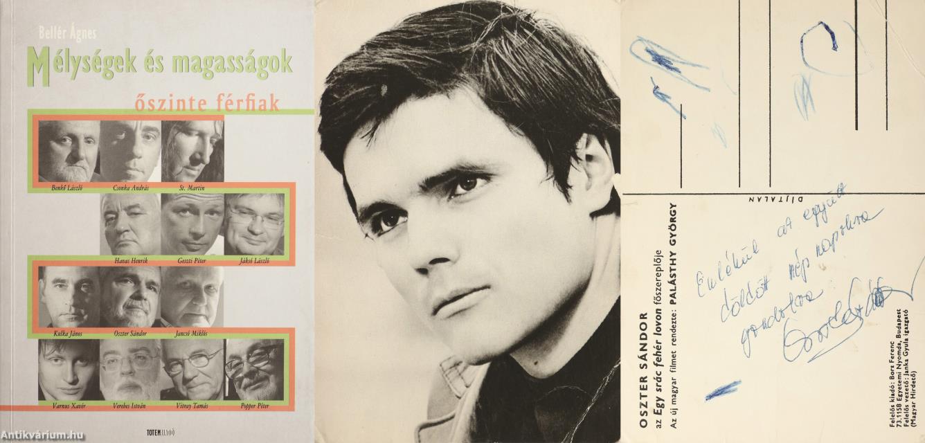 A kötethez tartozó képeslapot dedikálta Oszter Sándor (1948-2021) Kossuth- és Jászai Mari-díjas magyar színész, érdemes művész. A Vígszínház, a Nemzeti Színház és a Békéscsabai Jókai Színház tagja. 1969-ben az Agitátorok című filmben szerepelt először a mozivásznon. Legismertebb alakítását a Rózsa Sándor című filmben nyújtotta, melynek köszönhetően országszerte nagy ismertségre tett szert.