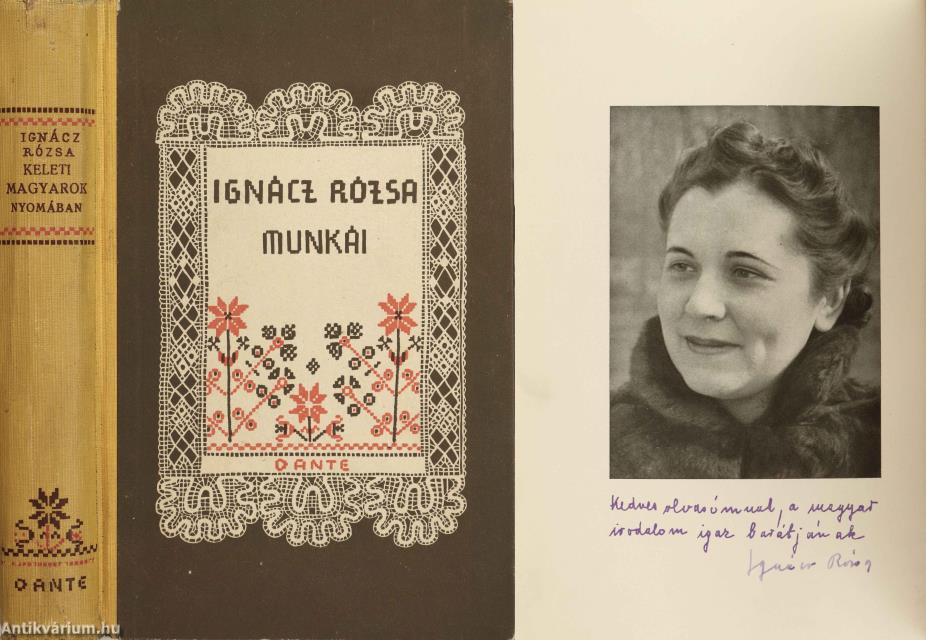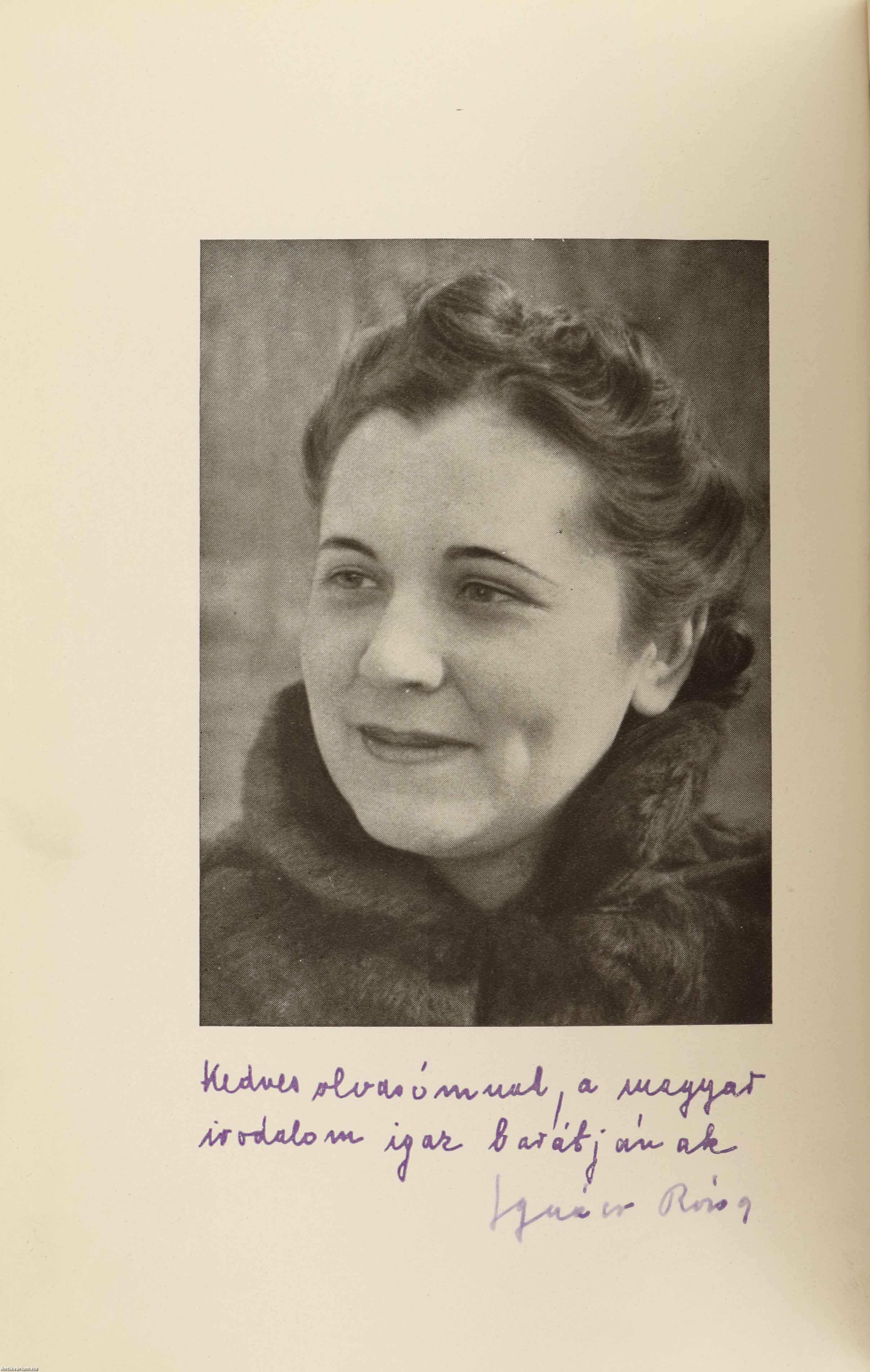 A szerzőt ábrázoló, fekete-fehér címlapkép alatt Ignácz Rózsa tollal beírt aláírása látható.