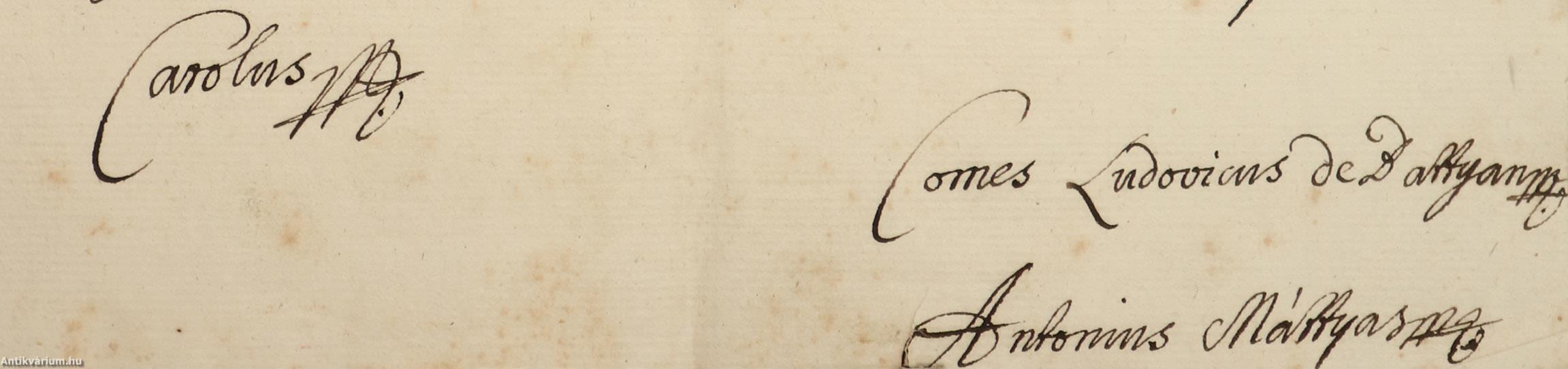 VI. Károly német-római császár, másként III. Károly magyar király nevéhez köthető, püspöki kinevezésről szóló kéziratos másolat. / 1738-as egyházi kinevezésről szóló kézirat.