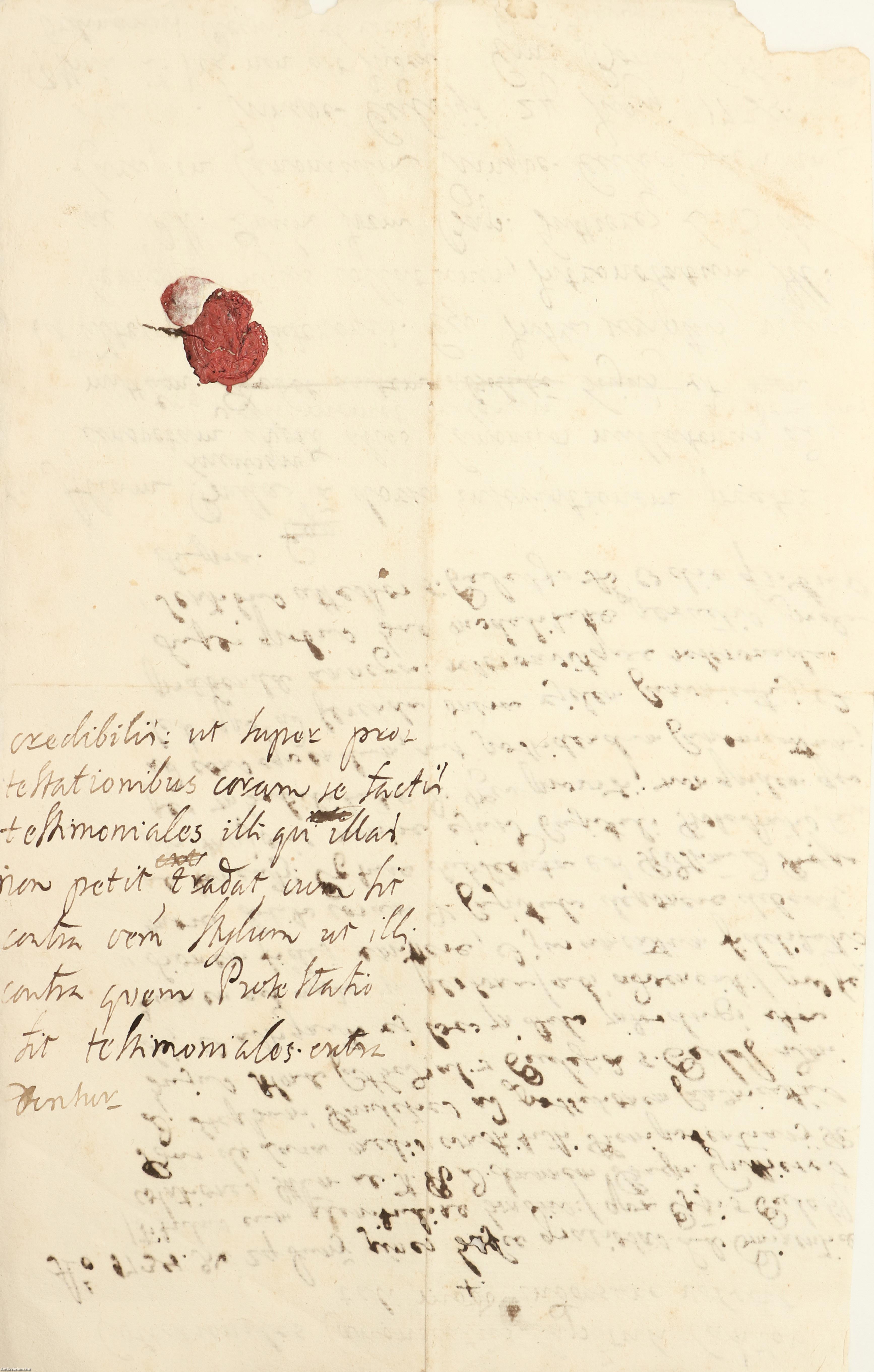 Hajtogatott, két oldal terjedelmű, viaszpecséttel ellátott kézirat.