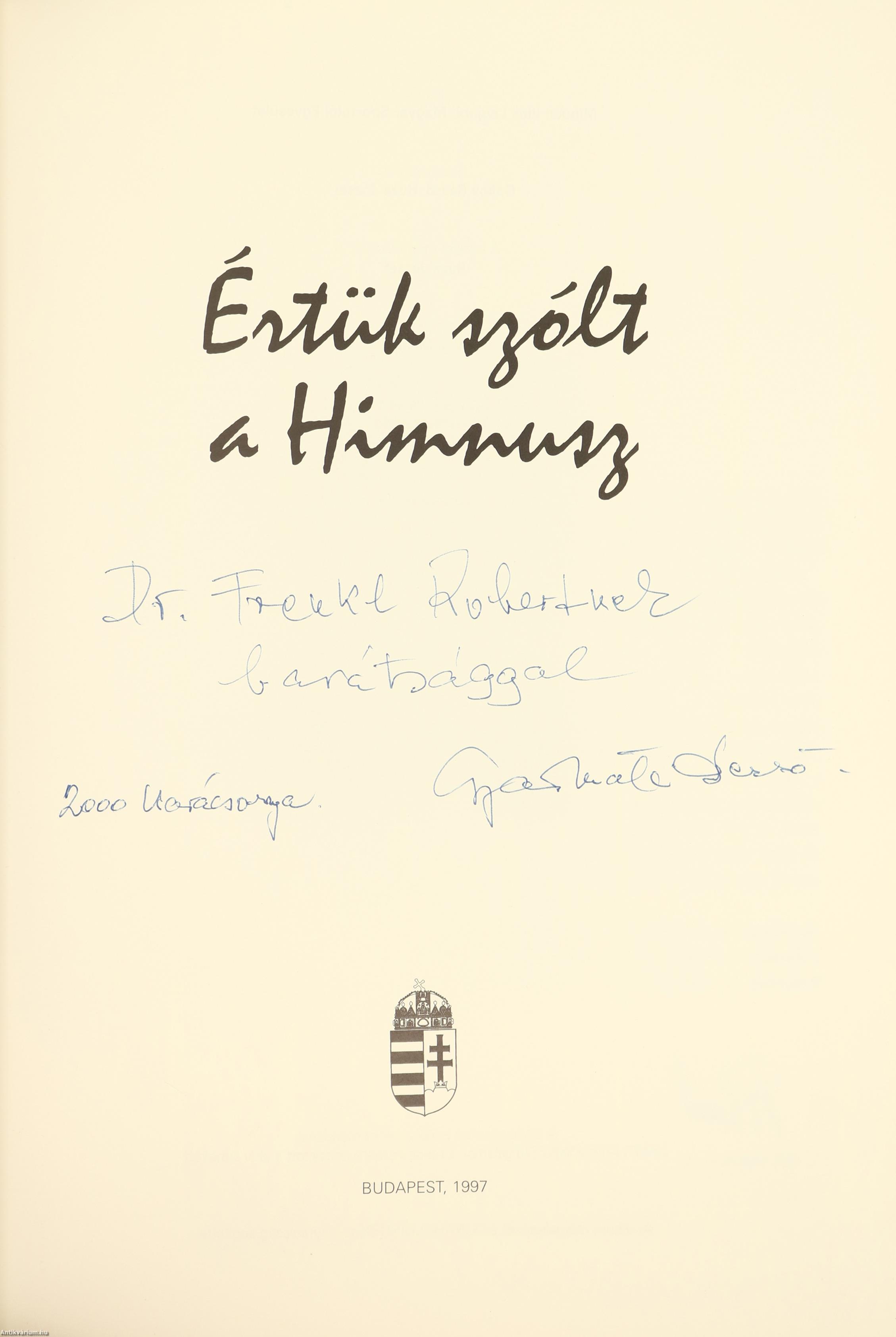 "Dr. Frenkl Robertnek barátsággal Gyarmati Dezső 2000 Karácsonya".