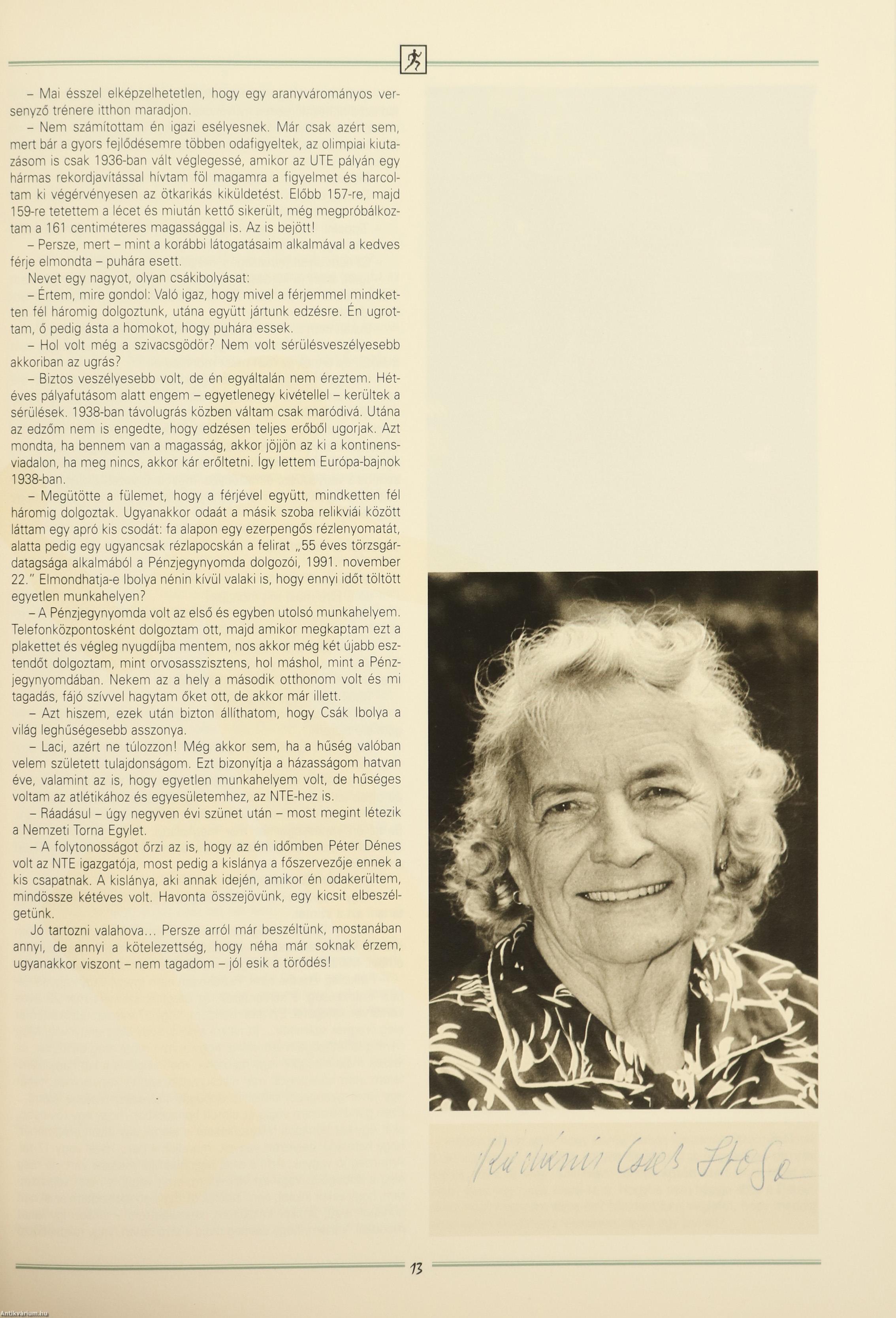 - Csák Ibolya, Kádár Lajosné (Budapest, 1915. január 6. – Budapest, 2006. február 9.) magyar atléta, olimpiai bajnok magasugró. Aláírása a 13. oldalon található.