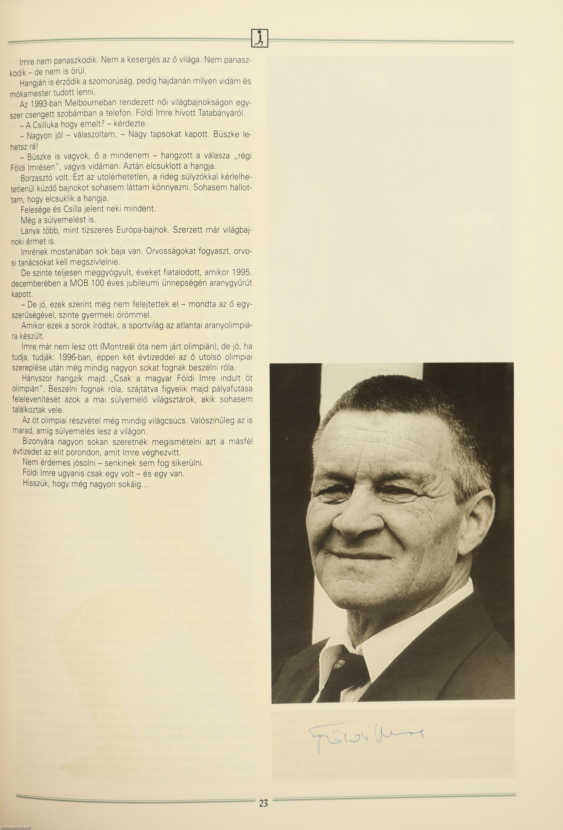 - Földi Imre (Kecskemét, 1938. május 8. – Tatabánya, 2017. április 23.) a Nemzet Sportolója címmel kitüntetett olimpiai bajnok súlyemelő, edző. Aláírása a 23. oldalon található.