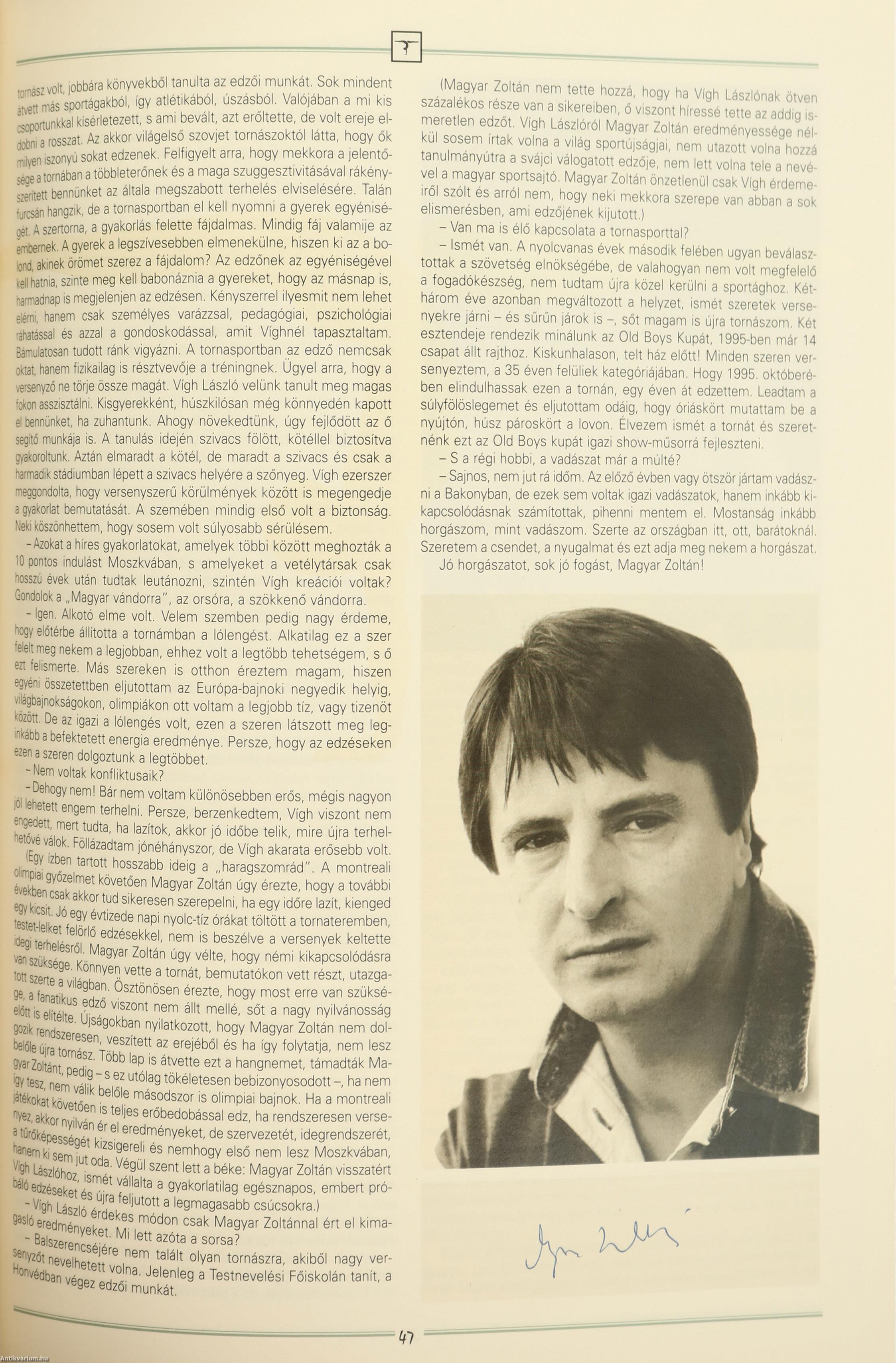 - Magyar Zoltán (Budapest, 1953. december 13. –) a Nemzet Sportolója címmel kitüntetett, kétszeres olimpiai bajnok magyar tornász, sportvezető, állatorvos. Aláírása a 47. oldalon található.