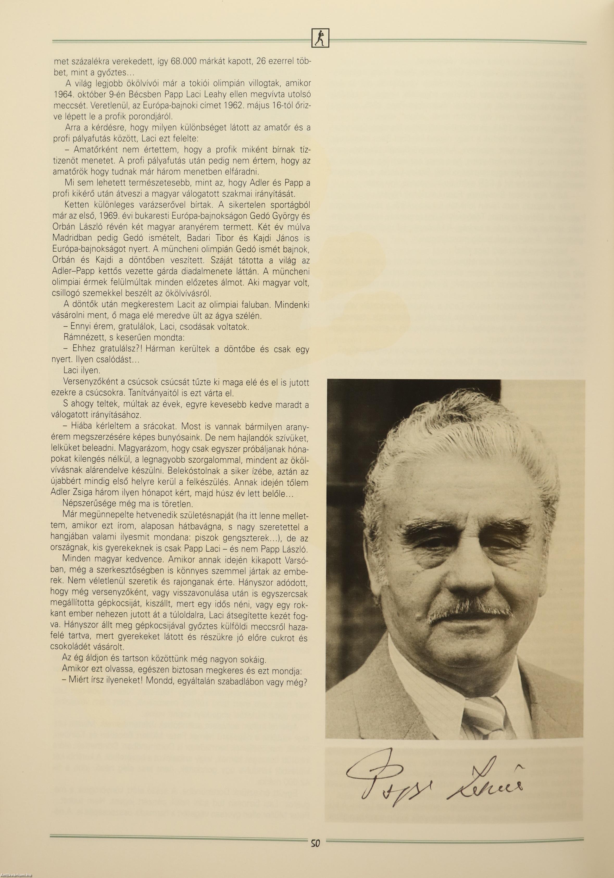 - Papp László (Budapest, 1926. március 25. – Budapest, 2003. október 16.) háromszoros olimpiai bajnok magyar ökölvívó, edző, sportvezető. Aláírása az 50. oldalon található.