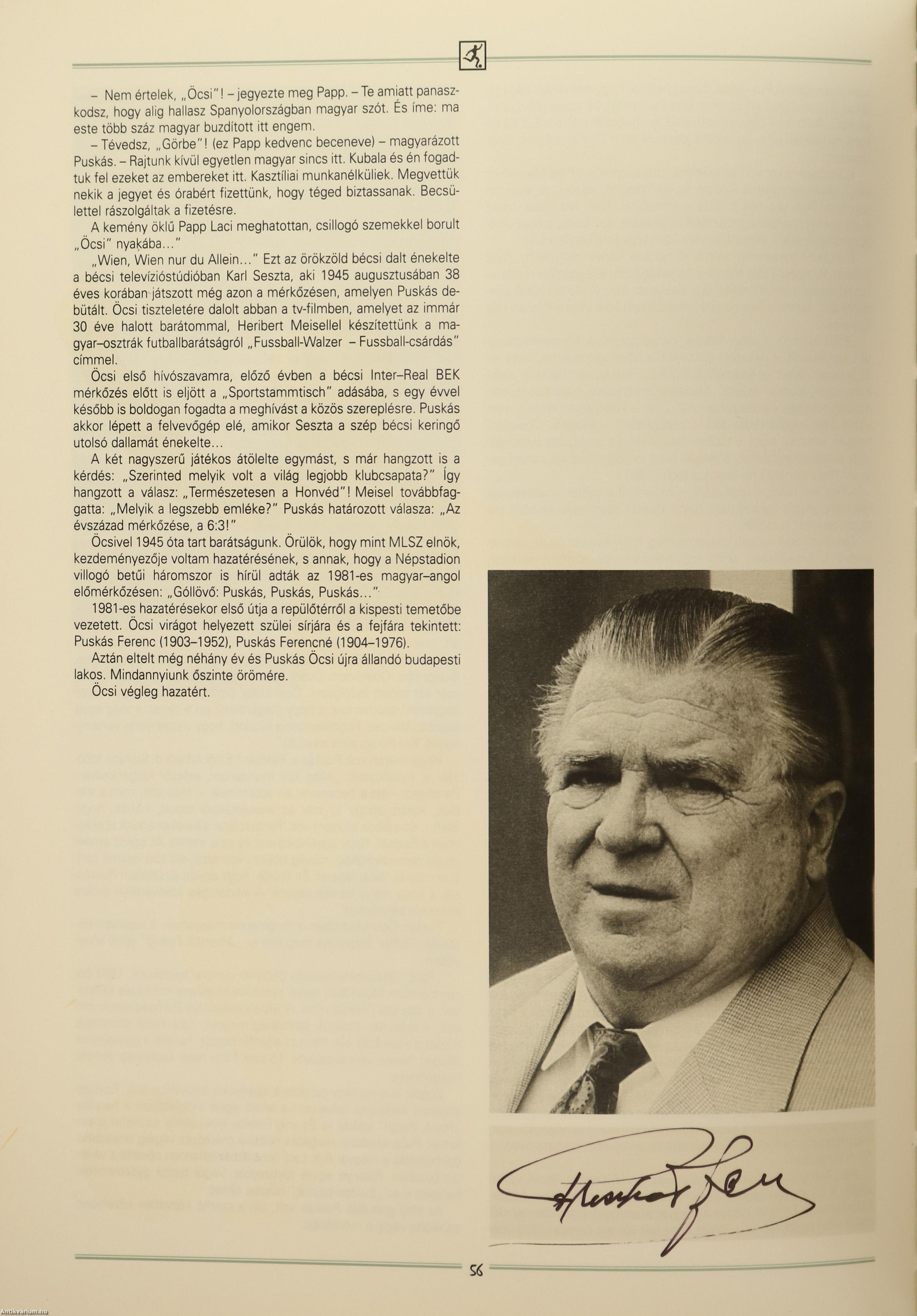 - Puskás Ferenc (Budapest, 1927. április 1. – Budapest, 2006. november 17.) a Nemzet Sportolója címmel kitüntetett, olimpiai arany- és világbajnoki ezüstérmes magyar labdarúgó. Aláírása az 56. oldalon található.