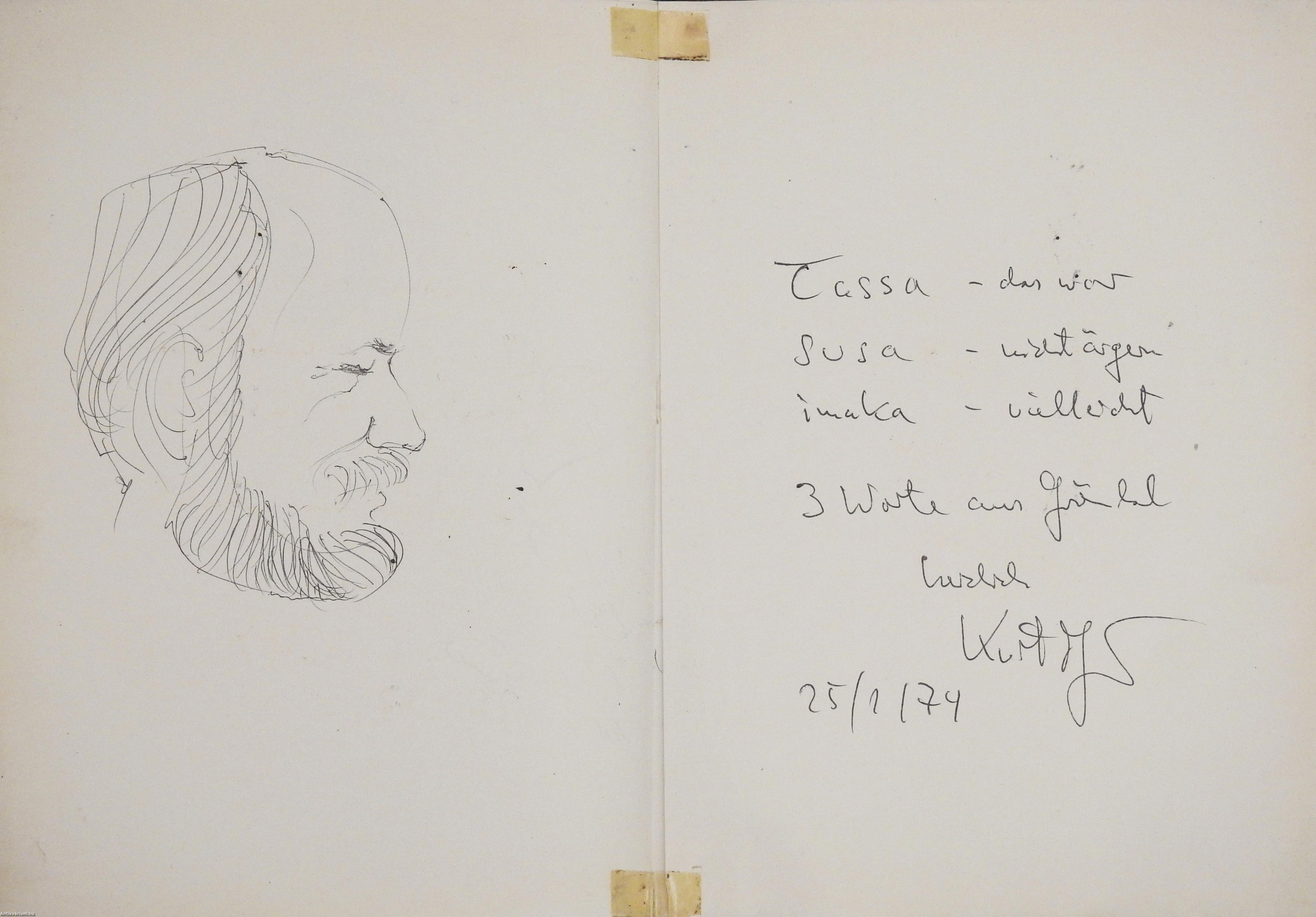 Közel 30 ismert személyről készített tollgrafikát, valamint hozzá tartozó magyar és idegen nyelven íródott dedikációt és aláírást tartalmazó gyűjtemény. A 160 oldal terjedelmű kötetből a grafikák, illetve a hozzájuk tartozó dedikációk és aláírások 40 számozatlan oldalon és 11 külön mellékleten helyezkednek el, a többi oldal üres. Néhány személyről több portré is készült, néhány portré a kötetbe lett beragasztva.