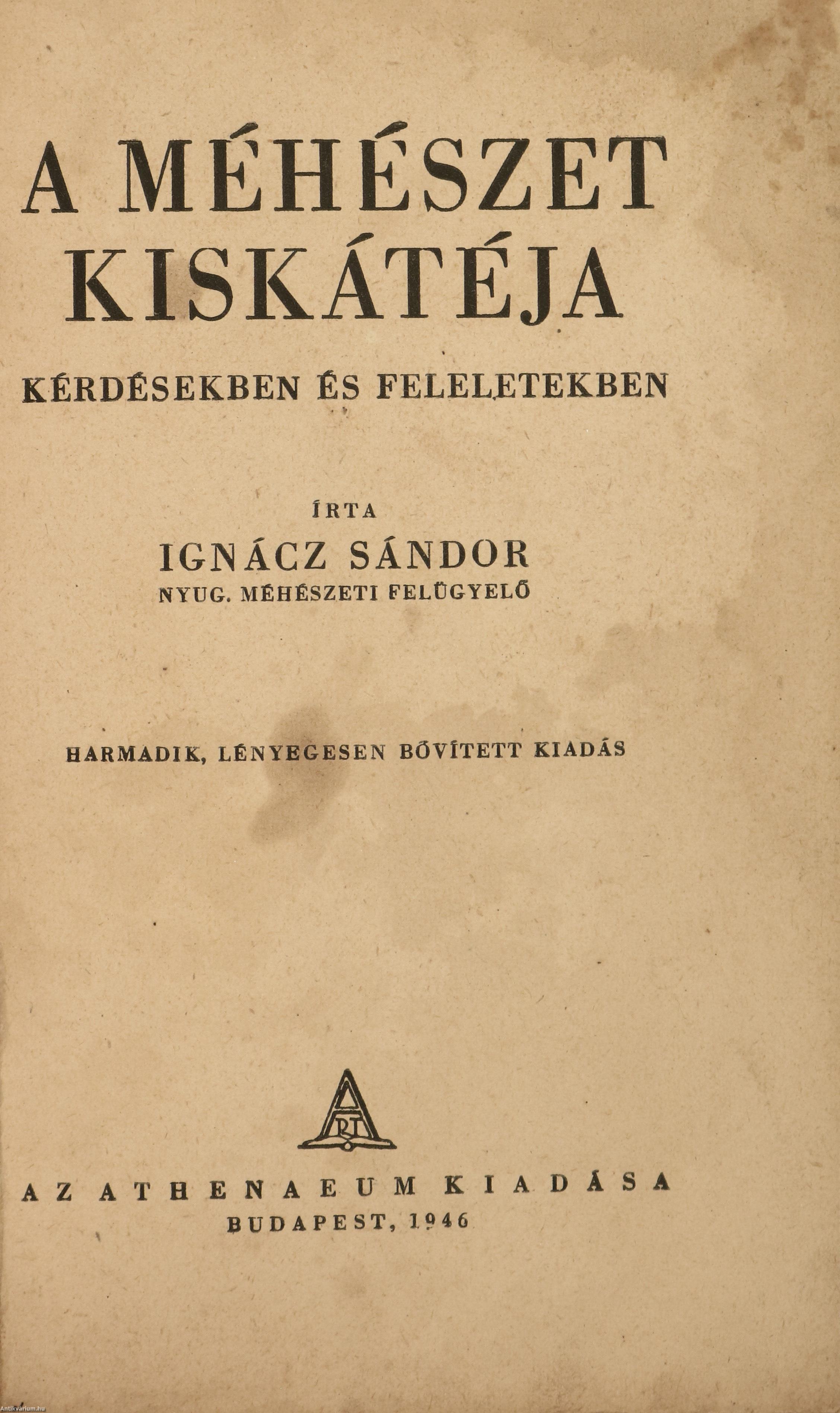 A méhészet kiskátéja. Kérdésekben és feleletekben. Írta: Ignácz Sándor nyugdíjazott méhészeti felügyelő.