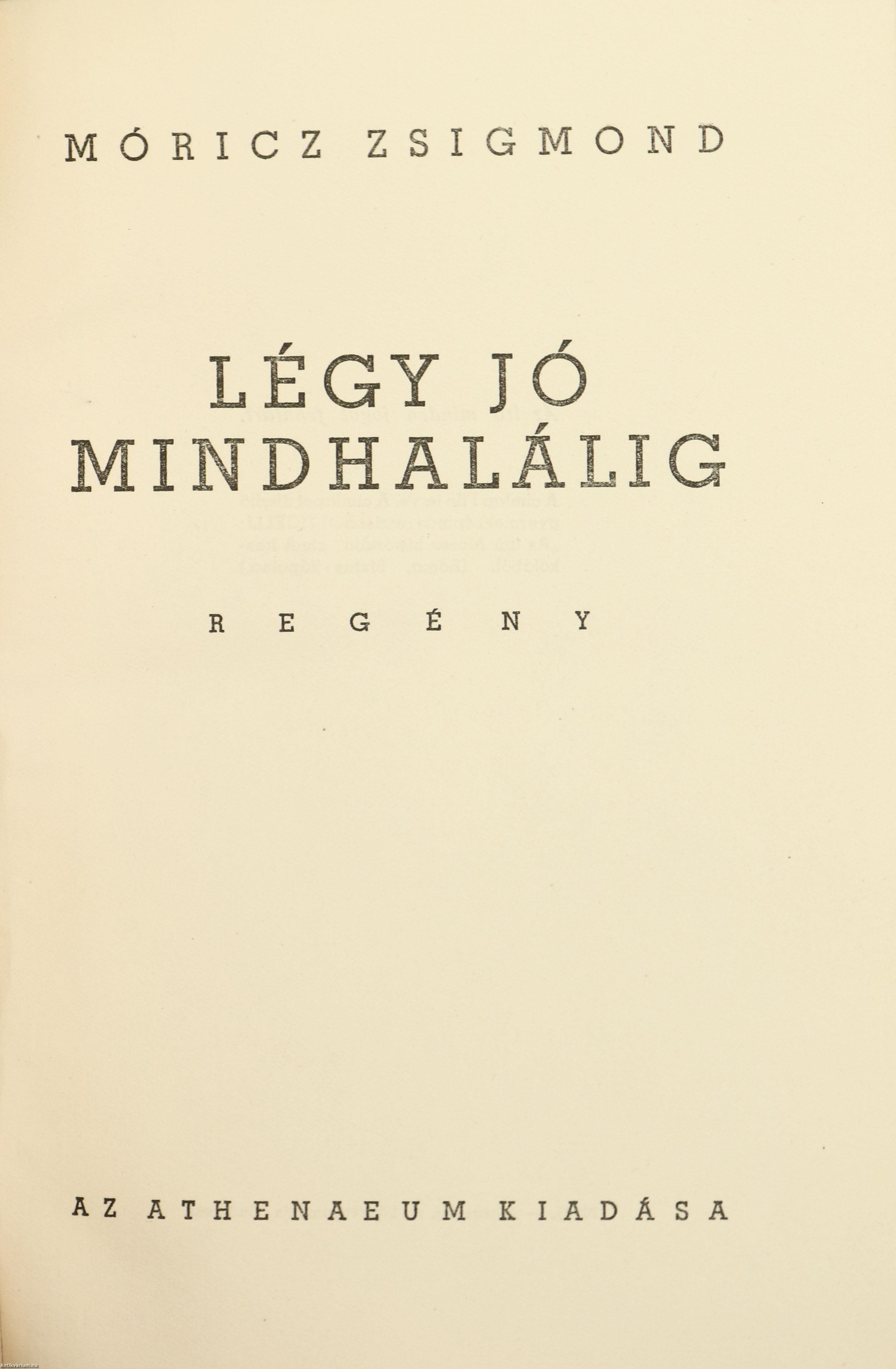 Első kiadás. Légy jó mindhalálig. Regény. Írta: Móricz Zsigmond.