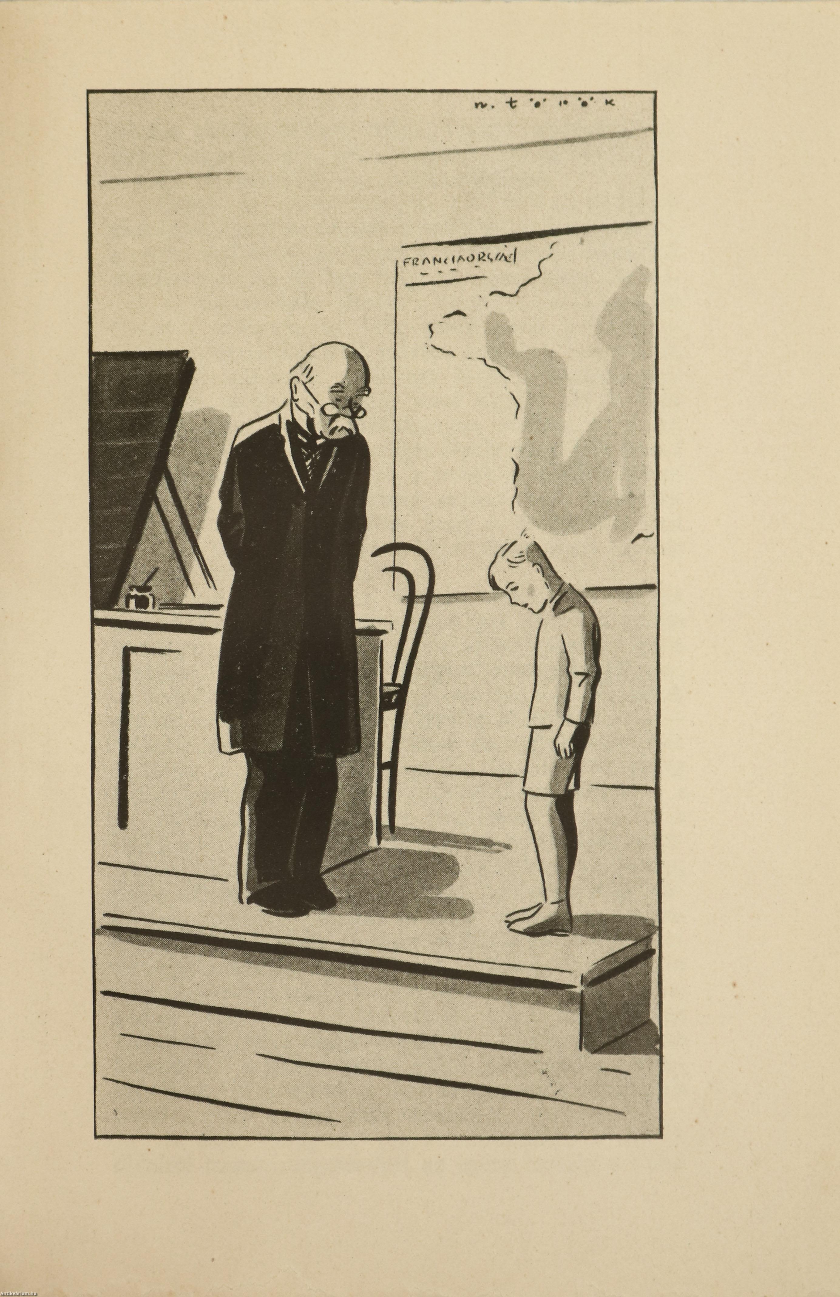 A kisdiák e percben a szoba közepén álló nagy asztal legutolsó, legszélső fiókját kihúzva, abban kotorász. Ennek a fióknak az első oldala zöldre van festve, mint maga az asztal. De az asztal felső lapja már erősen meg van kopva, a fiók azonban még mindig friss zöld s ez igen tetszik a kisdiáknak, csak azt sajnálja, hogy a fiók régi birtokosai a kulccsal már ezt is össze-vissza karmolászták."