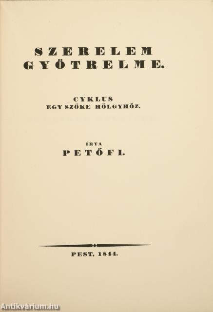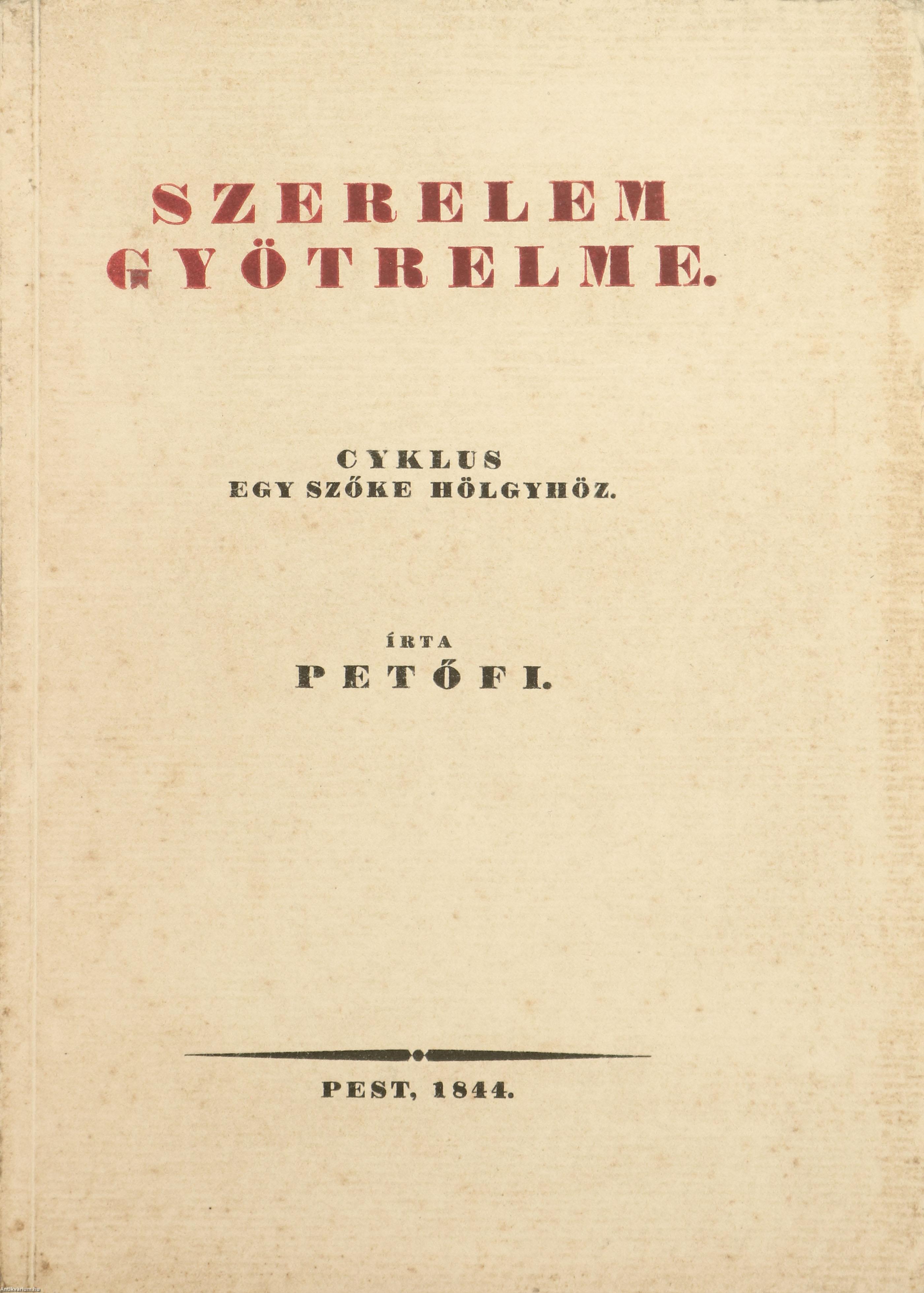 Szerelem gyötrelme. Cyklus egy szőke hölgyhöz. Írta: Petőfi [Sándor].