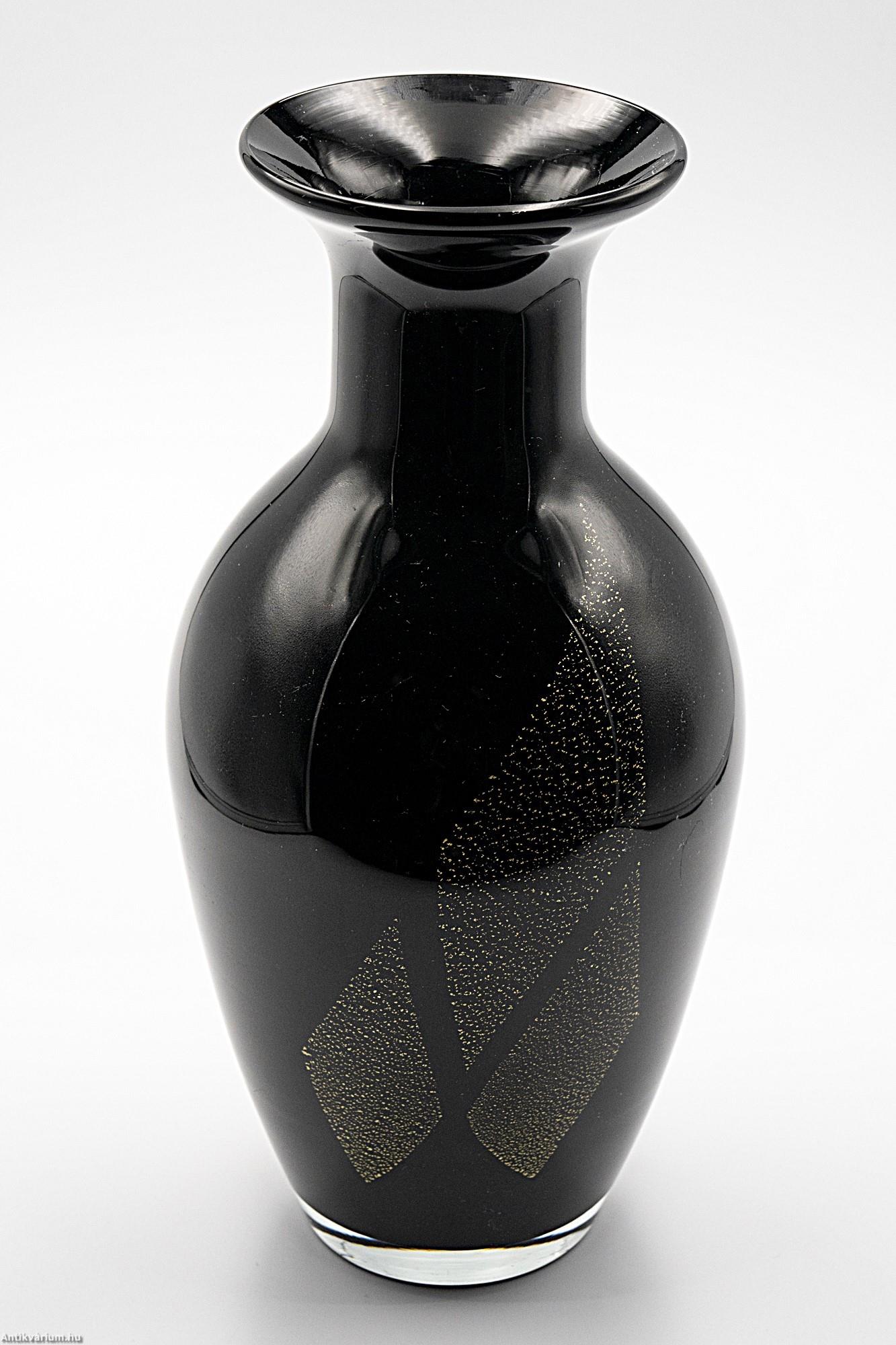 Murano art deco fekete - aranyfóliás üveg váza 20. század első fele 29 cm