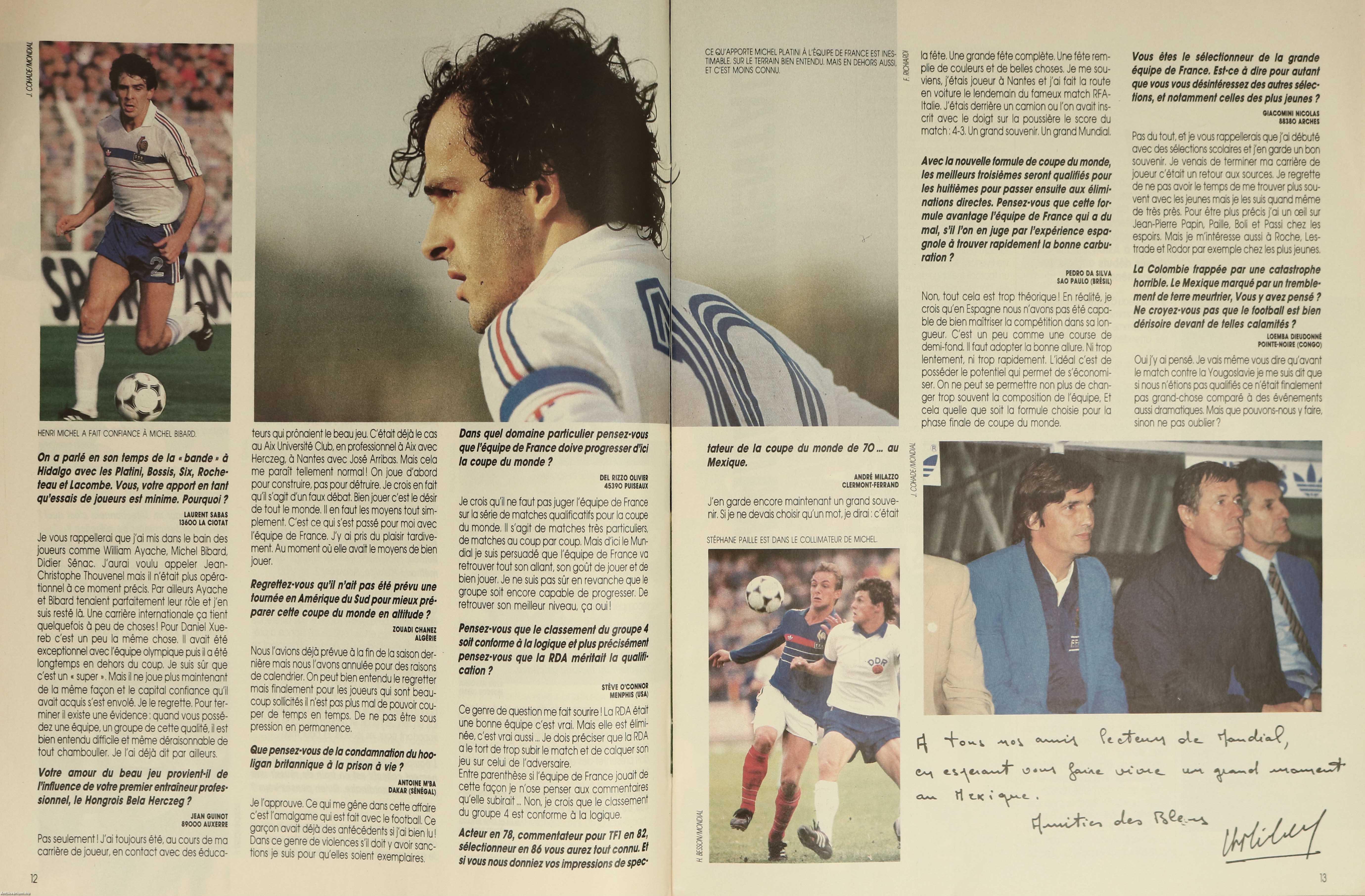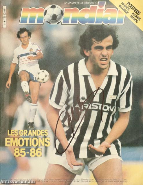 Michel Platini Európa-bajnok francia labdarúgó által aláírt példány. Mondial - Nouvelle série N° 70. - Décembre 1985. / Mondial - Új sorozat 70. szám - 1985. december. Főszerkesztő: Serge Mesones.