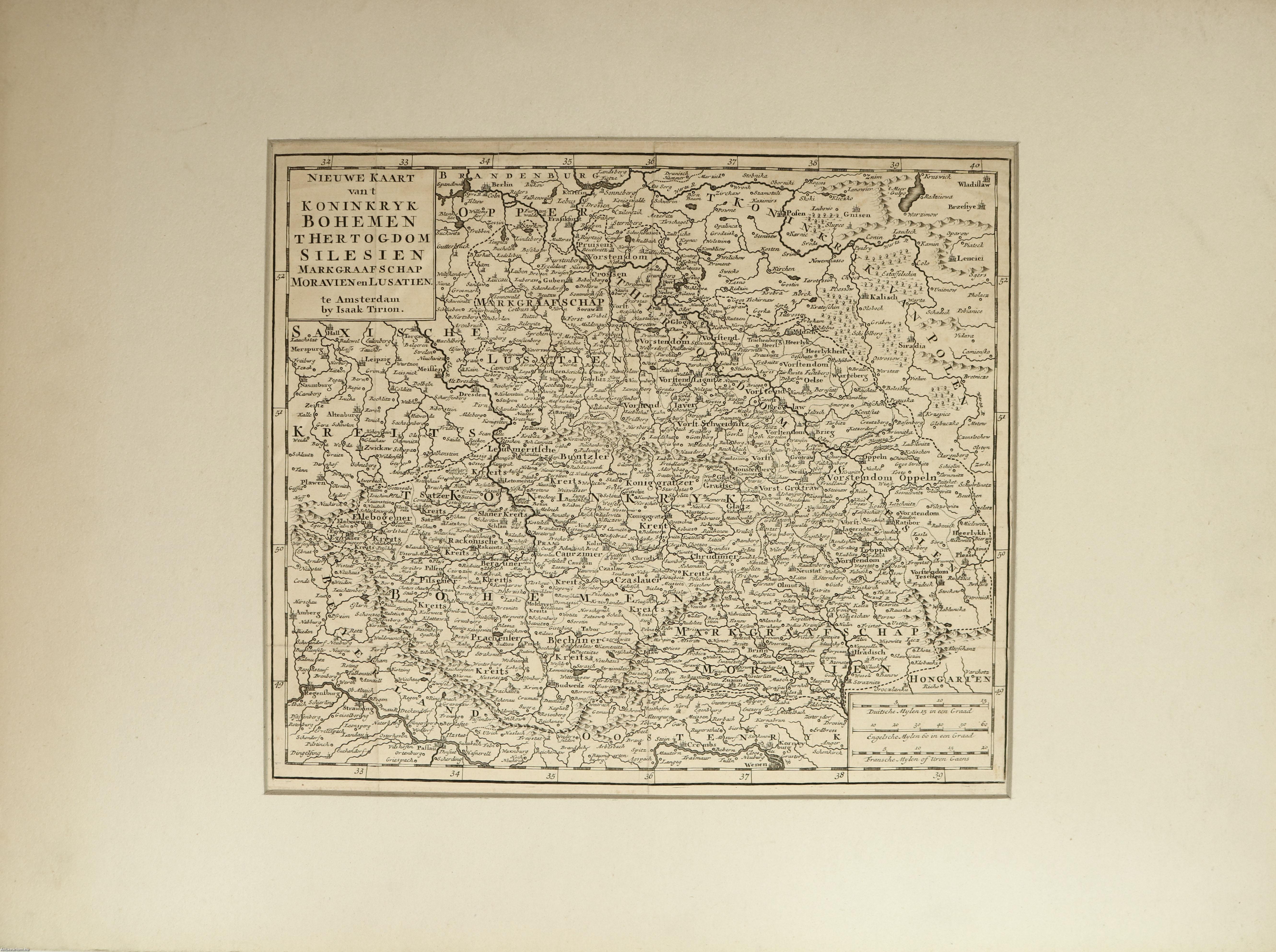 Tirion, Isaak: Nieuwe kaart van t Koninkryk Bohemen, Thertogdom Silesien, Markgraafschap Moravien en Lusatien (cca. 1730-1750)