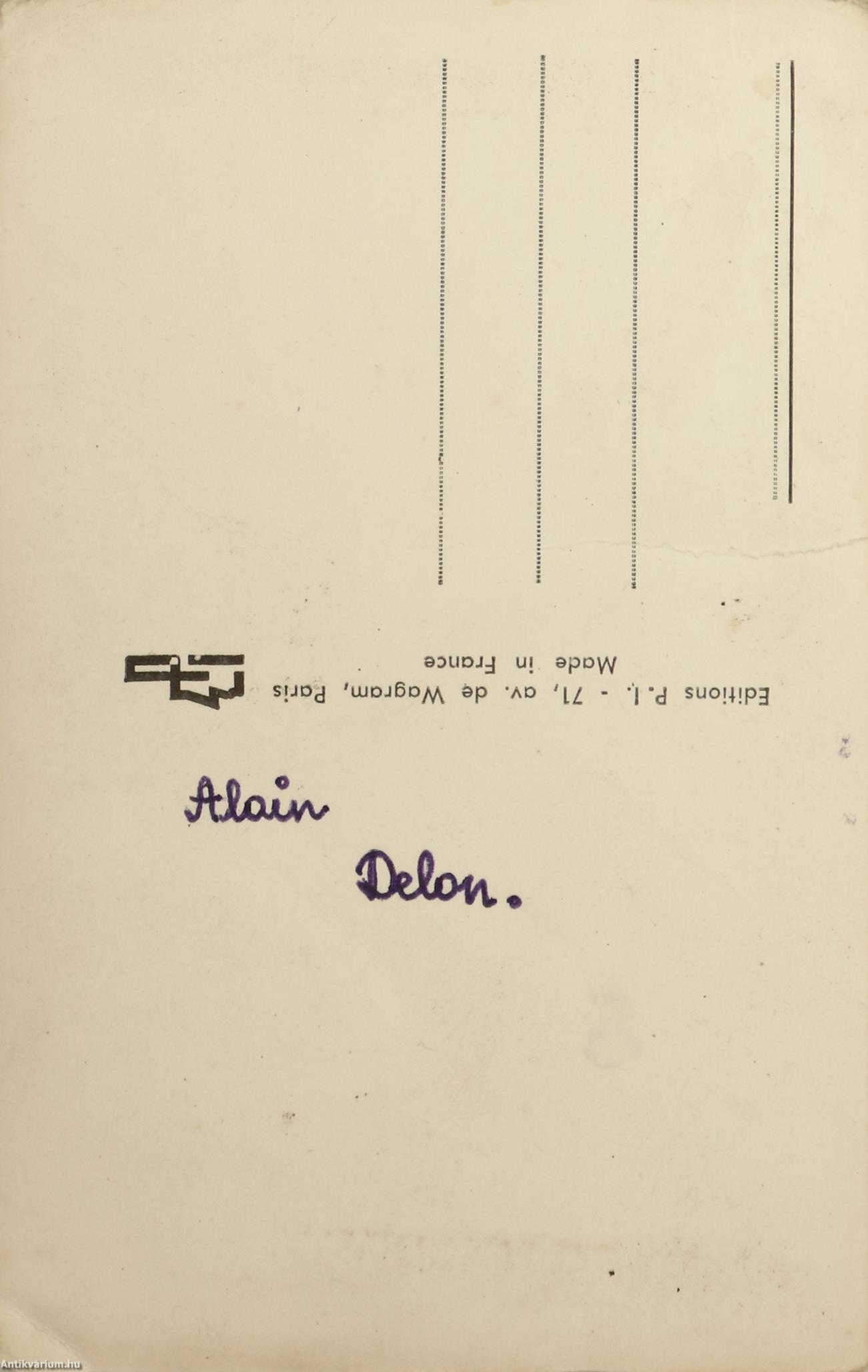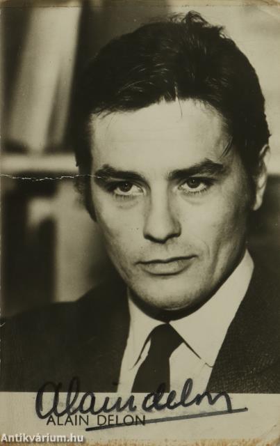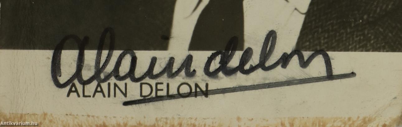 A fénykép alatt Alain Delon filctollal írt aláírása látható.