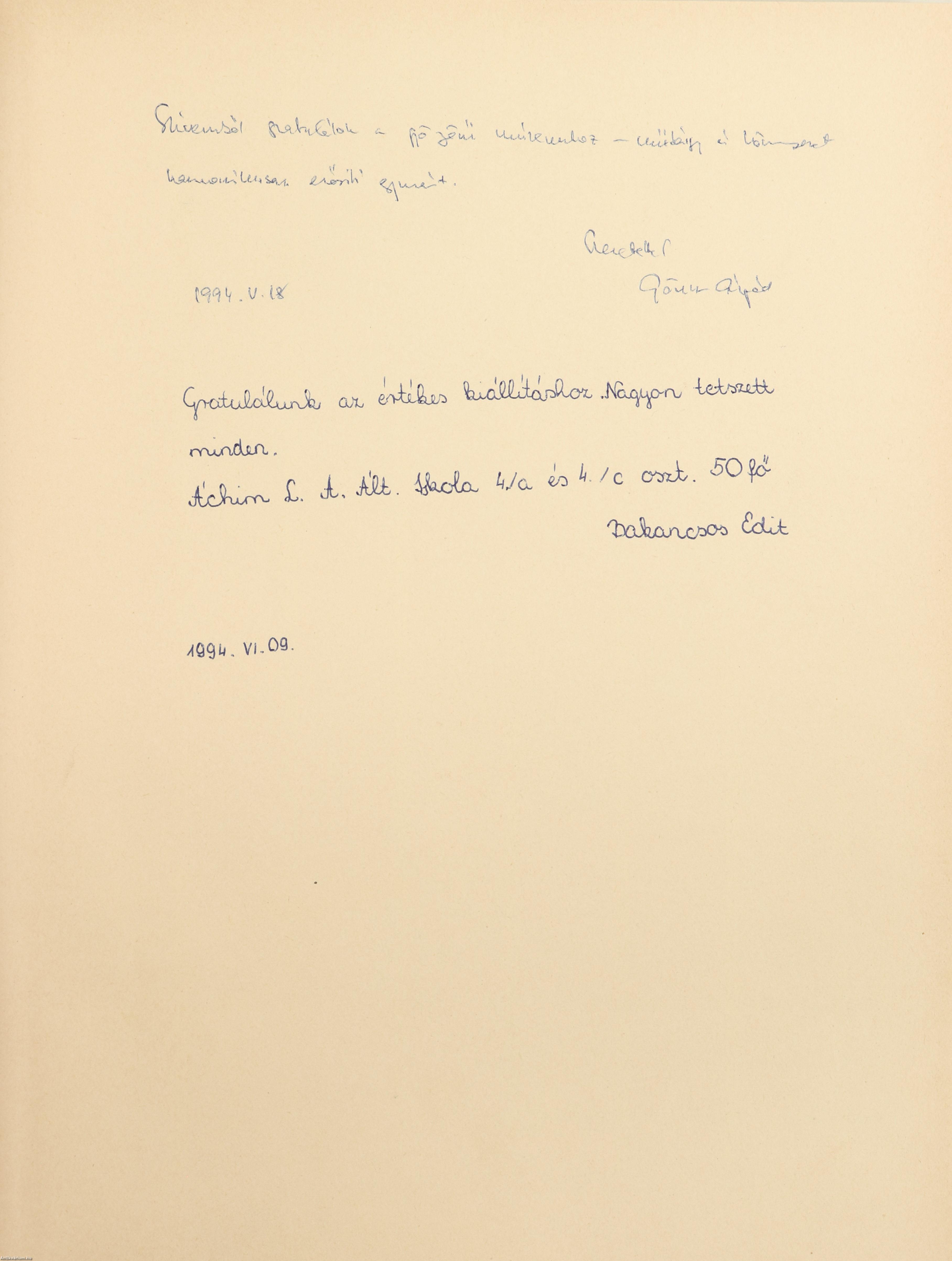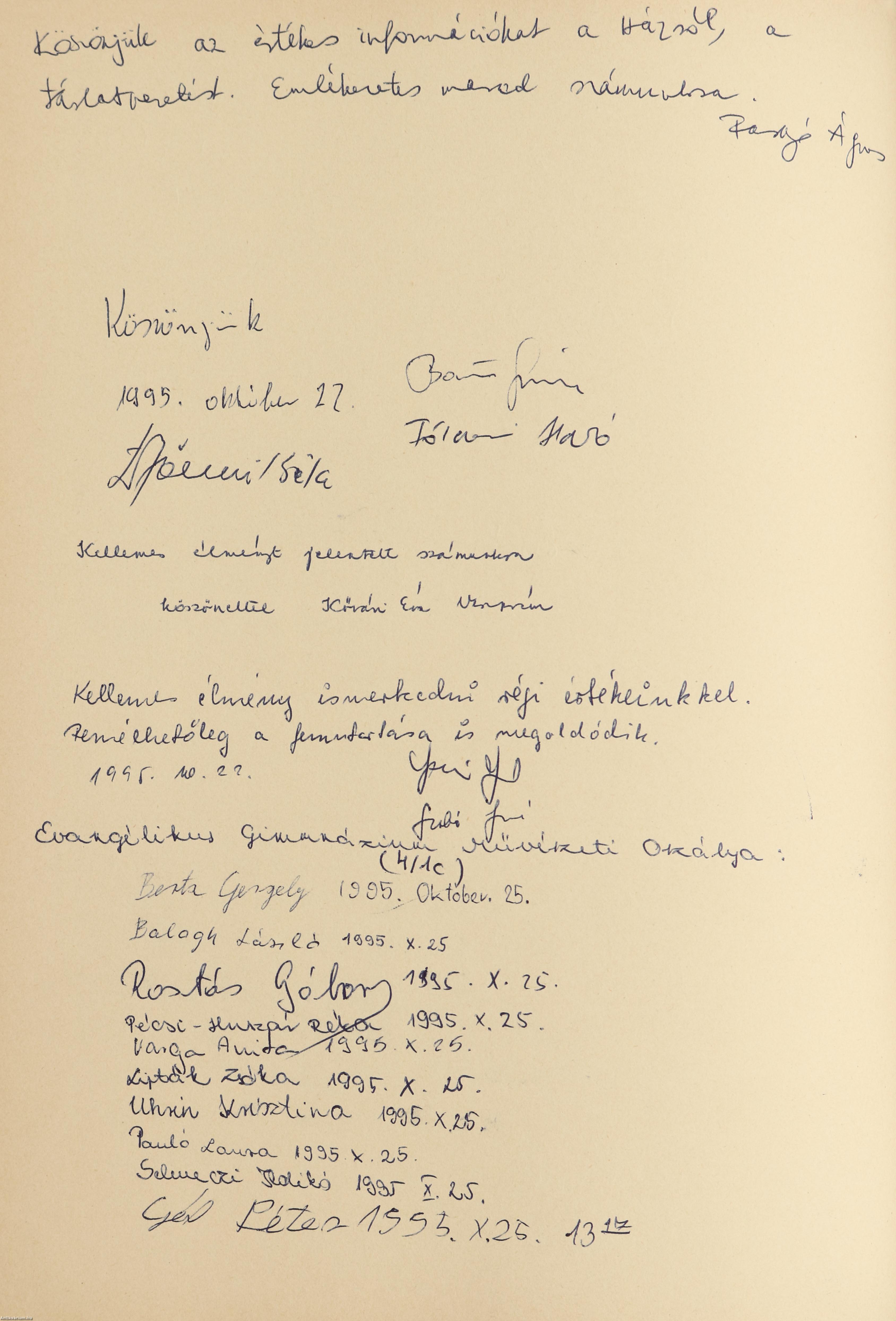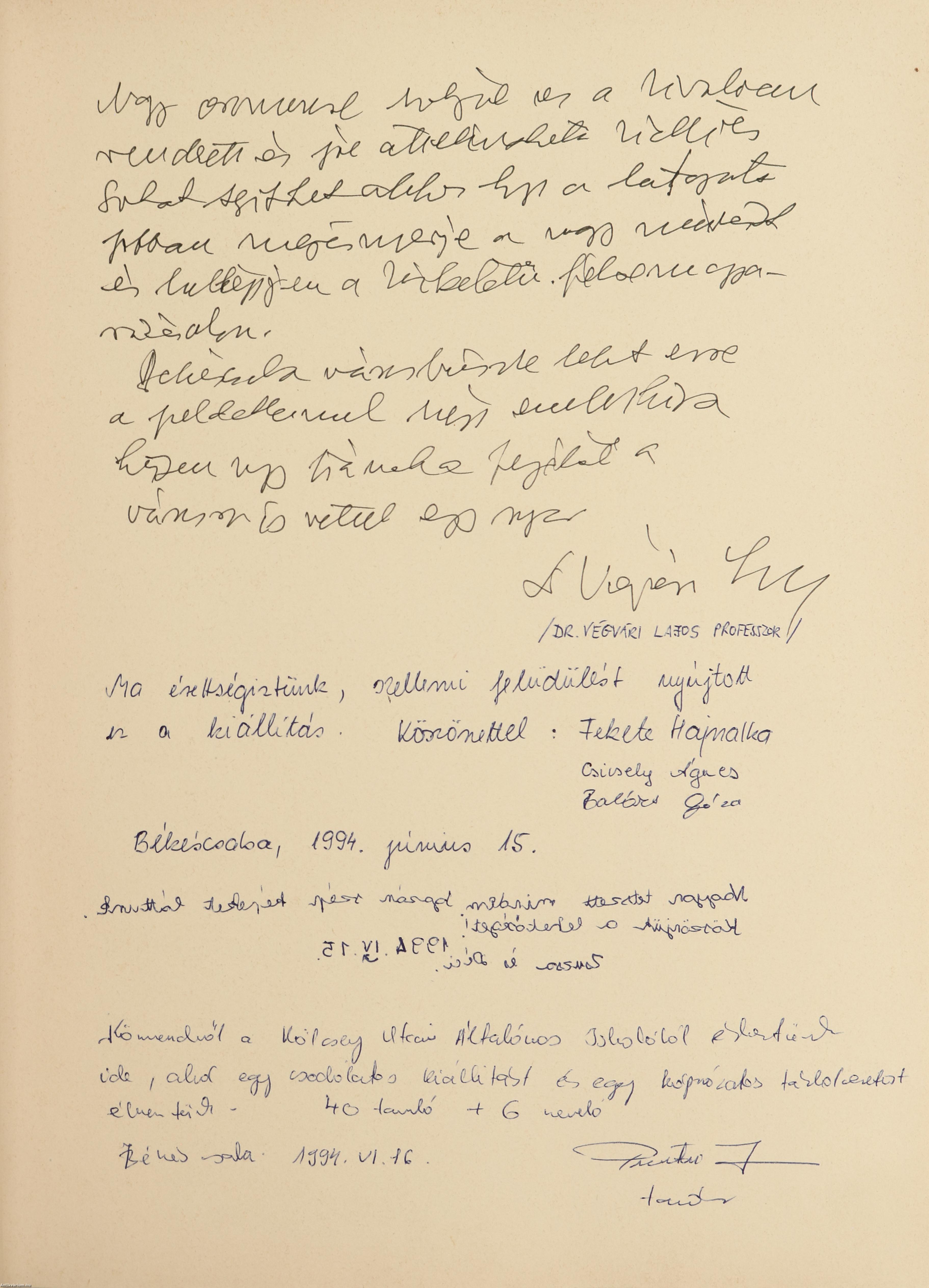 Göncz Árpád József Attila-díjas író, politikus; Dr. Végvári Lajos művészettörténész, illetve 1994 és 1998 között több tucat látogató által aláírt kötet.