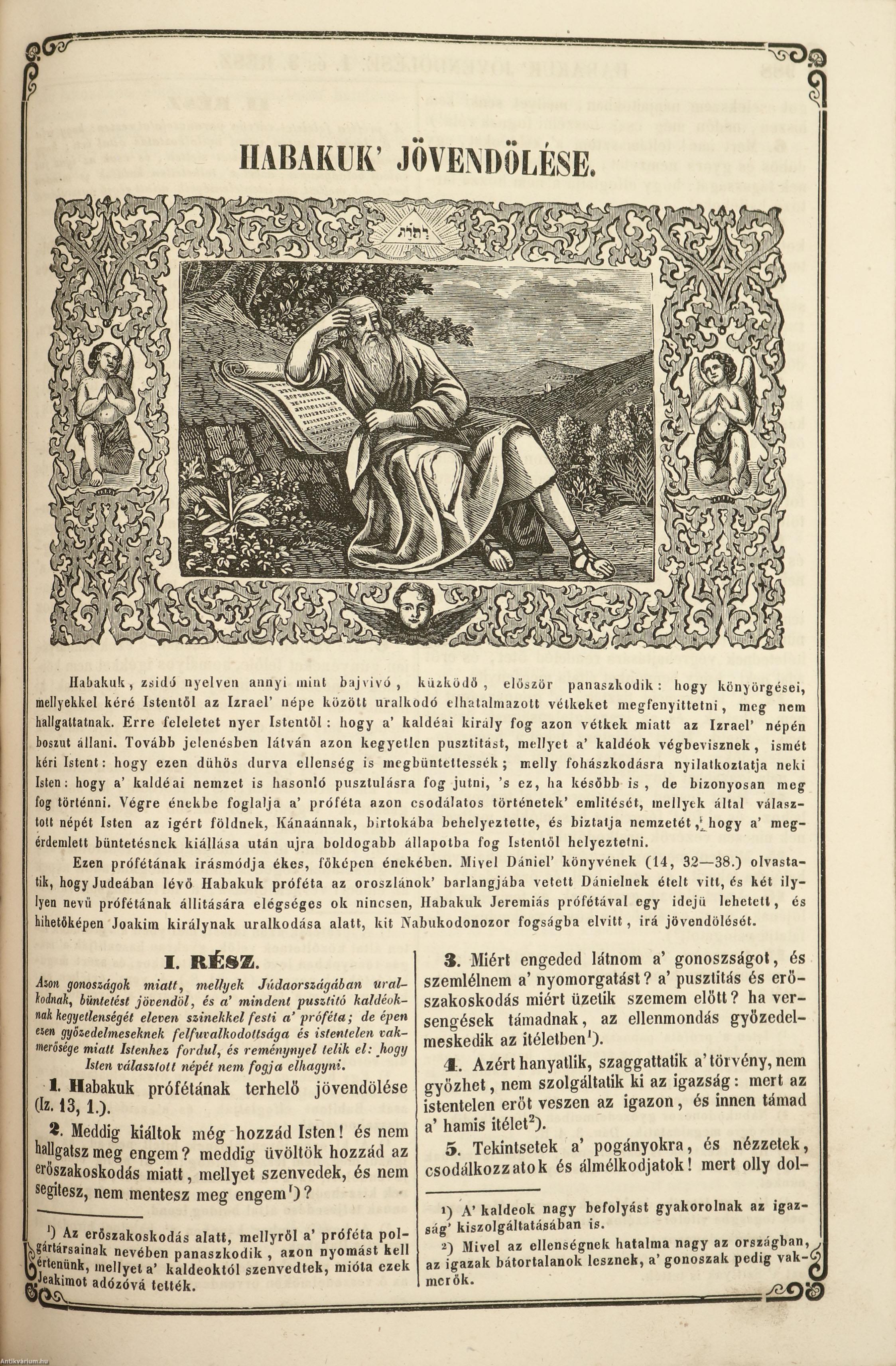 A' SZENTIRÁS jelen kiadása egyedül Bucsánszky Alajos ur ismeretes buzgóságának és merész vállalatának köszöni létét. Midőn tudniillik tapasztalná, hogy a' SZENTIRÁS magyar példányai olly ritkák, egyszersmind olly drágák, miszerint a' köznép tetemesebb áldozat nélkül azok birtokába nem jöhet: elhatározta magát, a' Szepessy-féle SZENTIRÁSNAK ujabb és számos képpel diszesitett, 's mégis olcsóbb ki-kiadására; e' végett engedelemért a dicsőemlékü Herczeg-Primás és esztergomi Érsek Kopácsy József ő főméltóságához alázatosan folyamodott. Örömmel fogadta ugyan a' nagy fő pap e' nemes szándékot, de kivitelére csak azon föltétel alatt adott engedelmet: hogy a kiadás ismét jegyzetekkel, de mégis rövidebbekkel történjék, mint a' minők az első kiadásban vannak. Ezen munka ő főméltósága Herczeg-Primástól csekélységemre ruháztatott. A' magas fölszólításnak édes örömest engedvén, Isten malasztja-, az olvasó közönség' méltányossága- és szándékom tisztaságában bízván, hozzá fogtam ezen terhes, de kellemes vállalathoz. Azonban minél tovább haladtam a' munkában, és jobban megismerkedtem a' szent könyveket átlengd isteni szellemmel: annál inkább kezdettem átlátni, hogy főleg olly jegyzetek szükségesek, mellyek az olvasót azon igazság' elismerésére vezessék, hogy itt nem emberek', hanem Isten' szavát, Isten' igéjét olvassa; hogy itt nem az emberi kíváncsiságnak táplálékot nyújtó tárgyak, hanem olly dolgok foglaltatnak, mellyek helyesen fölfogva behatnak a szivek' és vesék belsejébe, lelkünket a' pornál fölebb emelik, Isten felé irányozzák és annak mély imádására birják ki a' teremtés' nagy napjától fogva egész máig nemünknek nemcsak mindenható Istene, hanem egyszersmind gondviselő, ideig és örökké boldogító atyja is. Ezen nézet lebegvén szemeim előtt, a' holt betühez nem tapadtam, hanem annak szellemébe behatni 's azt a' jegyzetekbe is átönteni Istennek segítségével törekedtem.