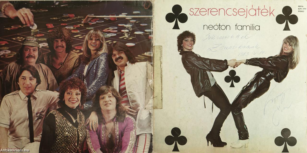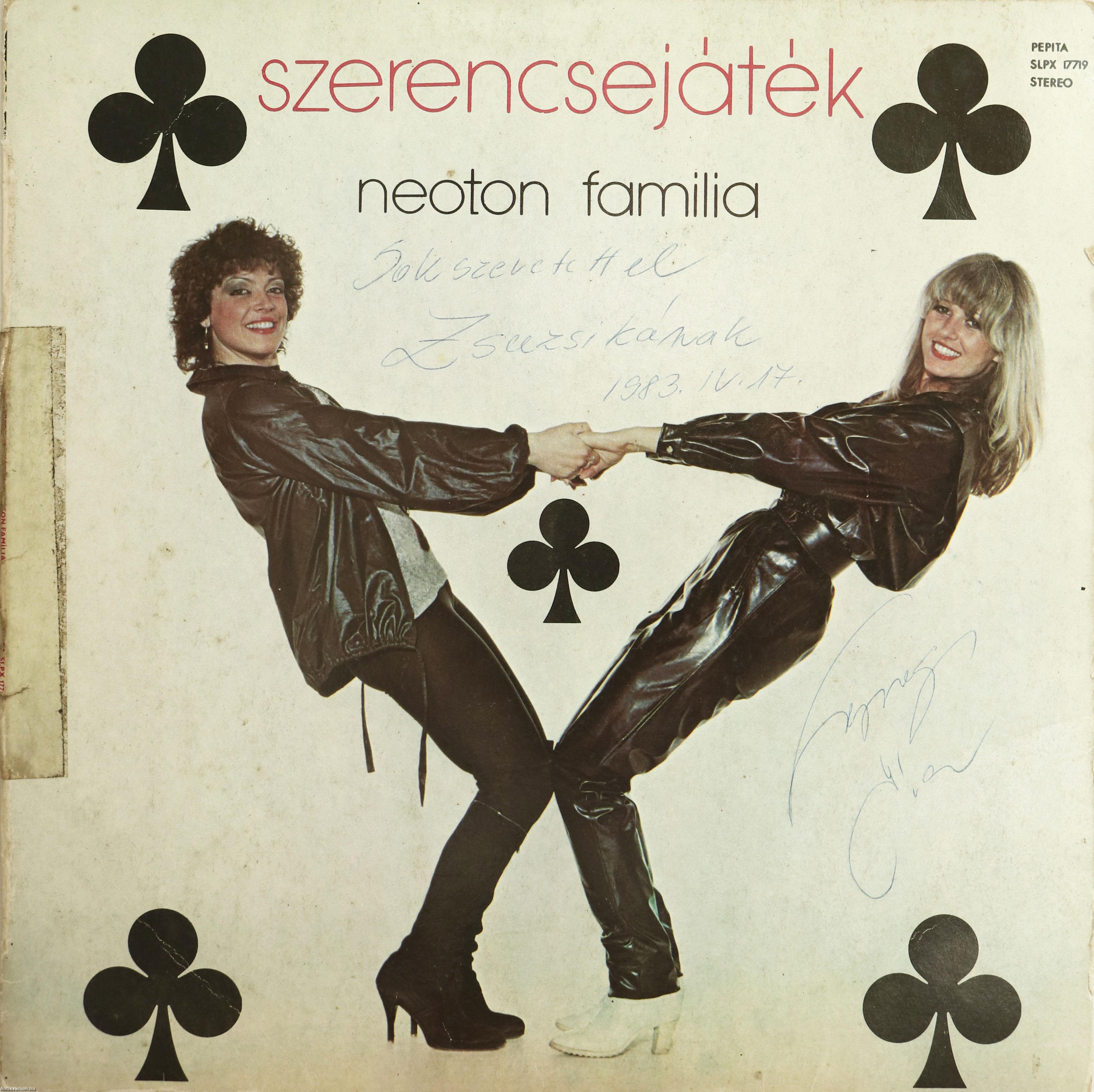A Neoton Família együttes egyik tagja Csepregi Éva által dedikált példány. Neoton Familia: Szerencsejáték. (hanglemez).