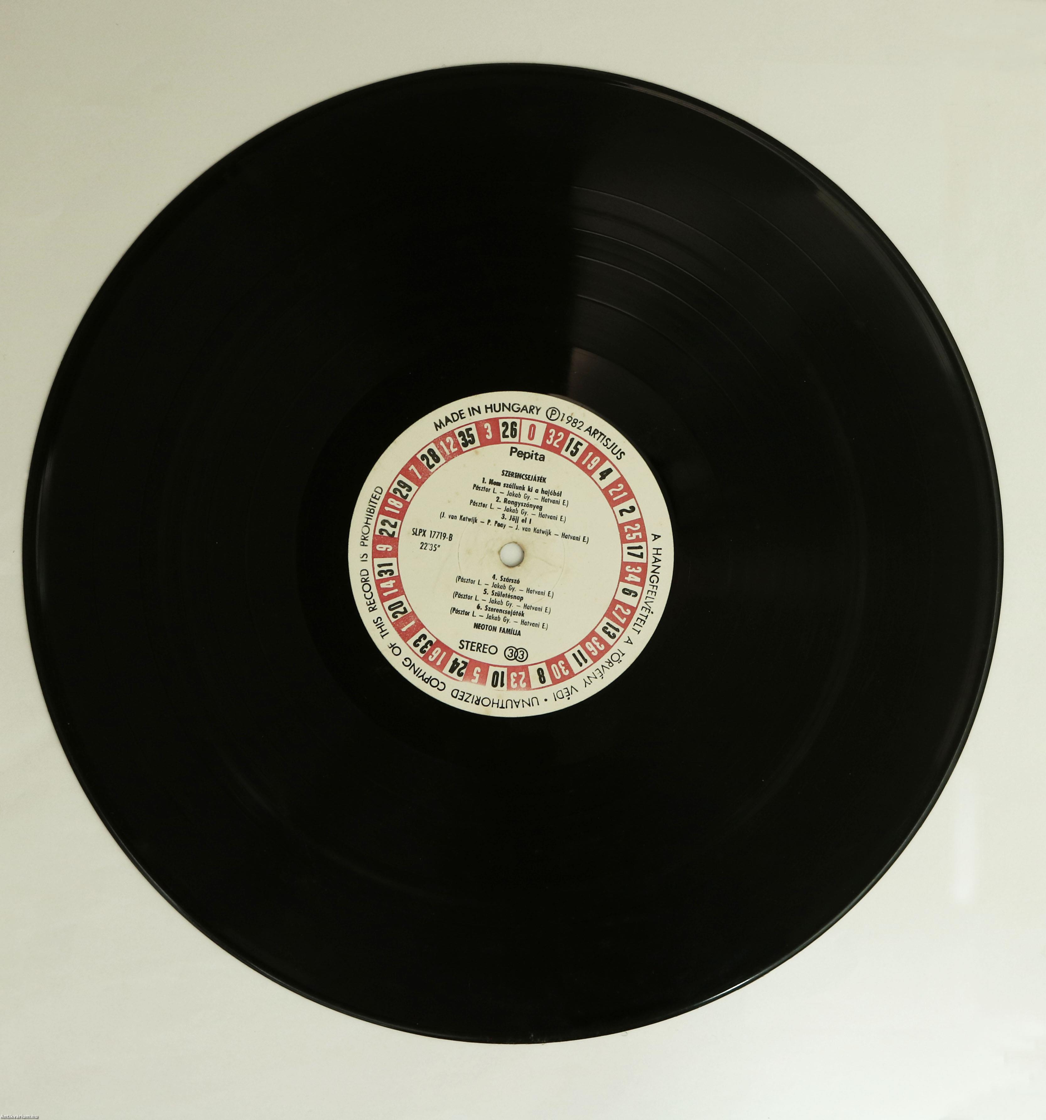 "Sok szeretettel Zs.-nak. 1983. IV. 17. Csepregi Éva"Zenei rendező és hangmérnök: Dobó Ferenc. Pepita felvétel. Fotó: Mohácsi Miklós. Grafika: Kiss Dezső. A lemez sztereó és monó hangszedővel is lejátszható. Nyomtatta a Globus Nyomda.