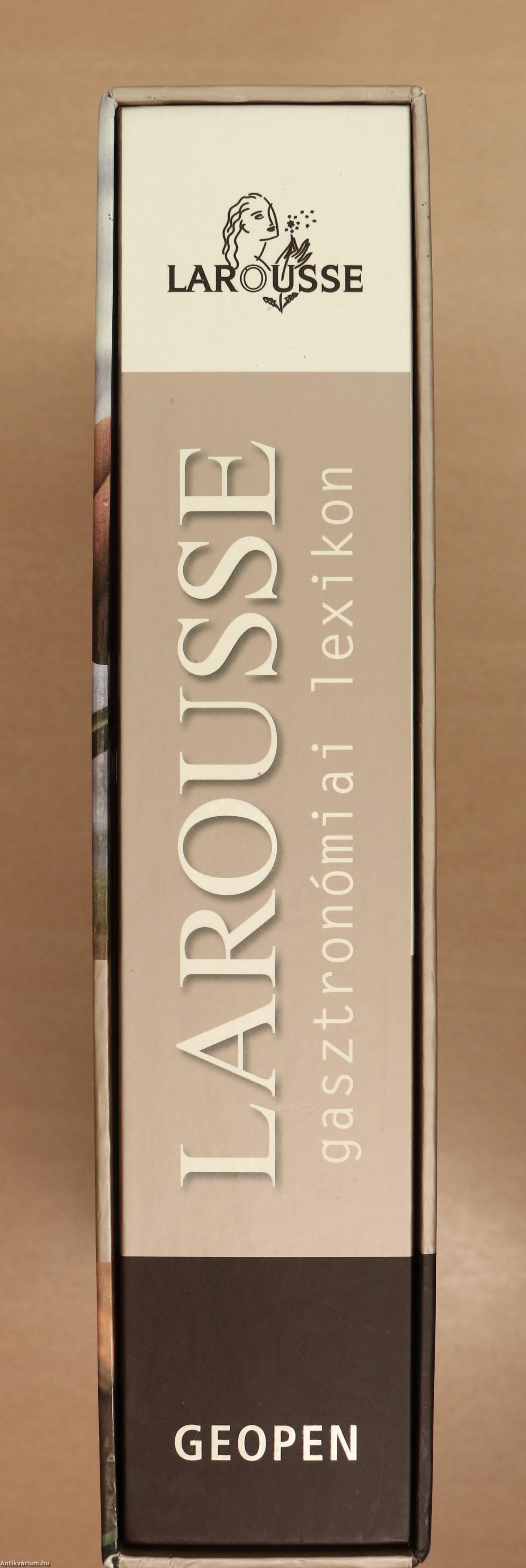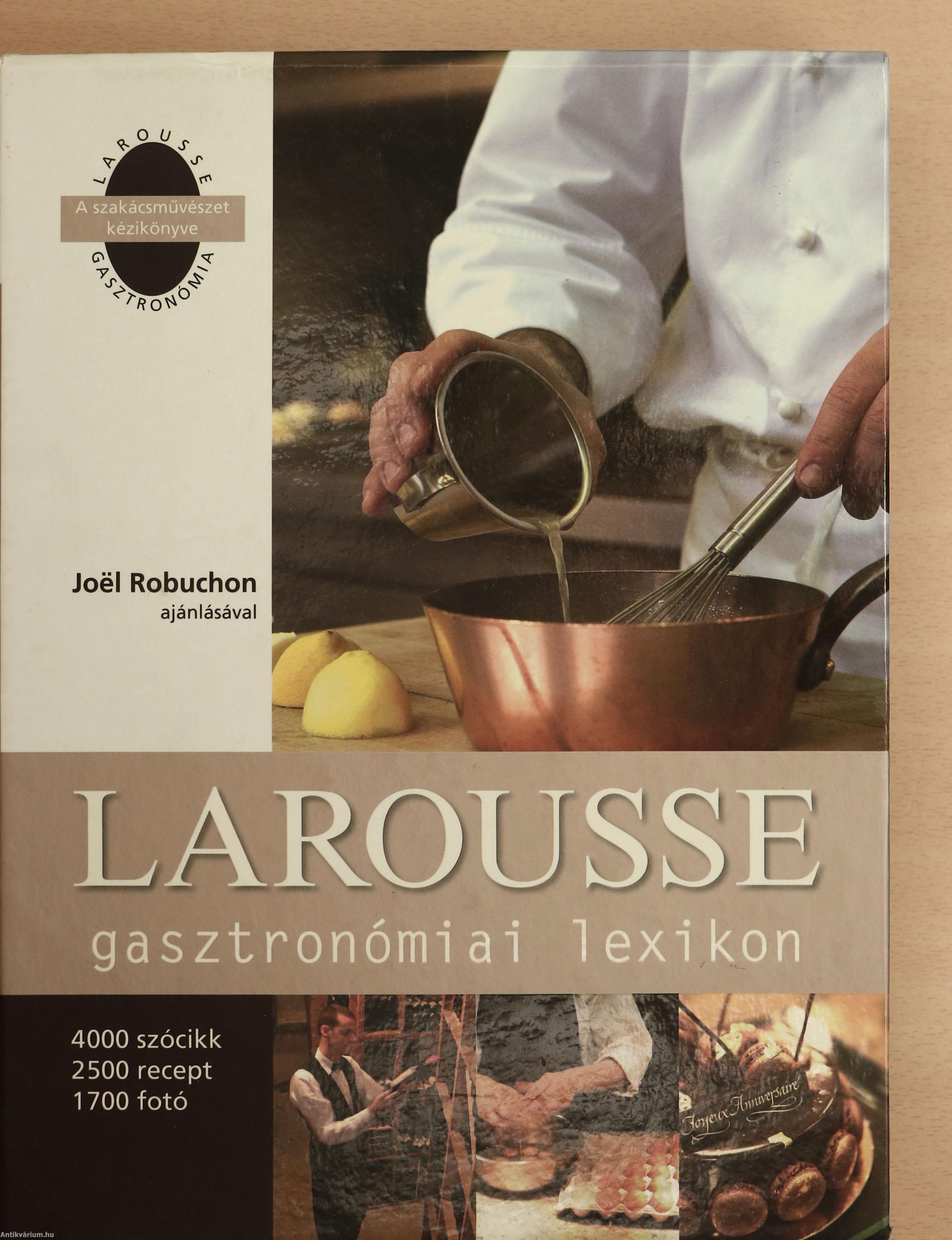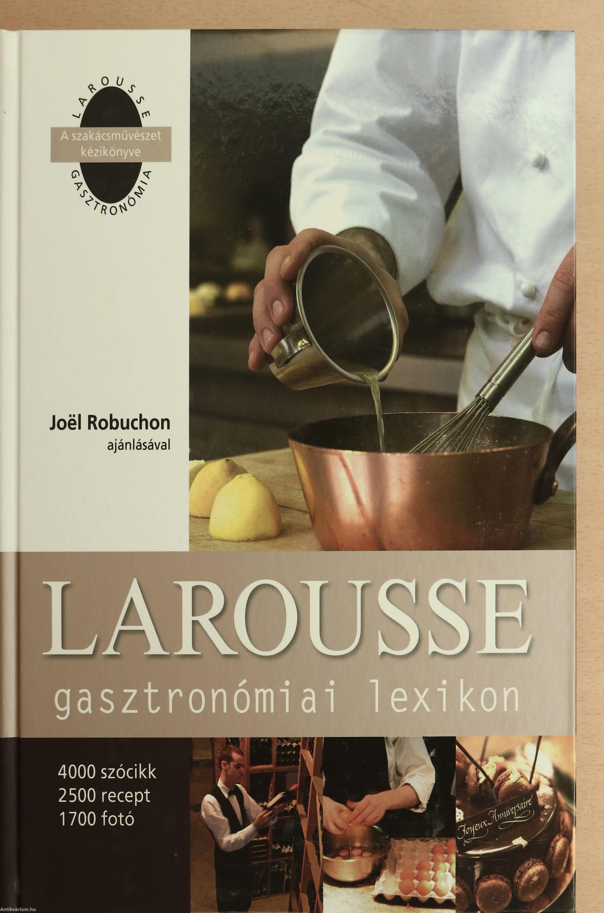 A Larousse gasztronómiai lexikon 1938-ban jelent meg először, és azóta a kulináris ismeretek első számú forrásának számít. Nem szakácskönyv, hiszen 4000 szócikkében minden megtalálható: klasszikus receptek éppúgy, mint az újító szellemű friss kreációkat is bemutató mesterfogások, a legújabb technológiák, a hagyományos és a korszerű főzési eljárások, az alapanyagok fajtáinak részletes leírása, a konyhai felszerelések, az egyes ételek története és a leghíresebb mesterszakácsok életrajza.