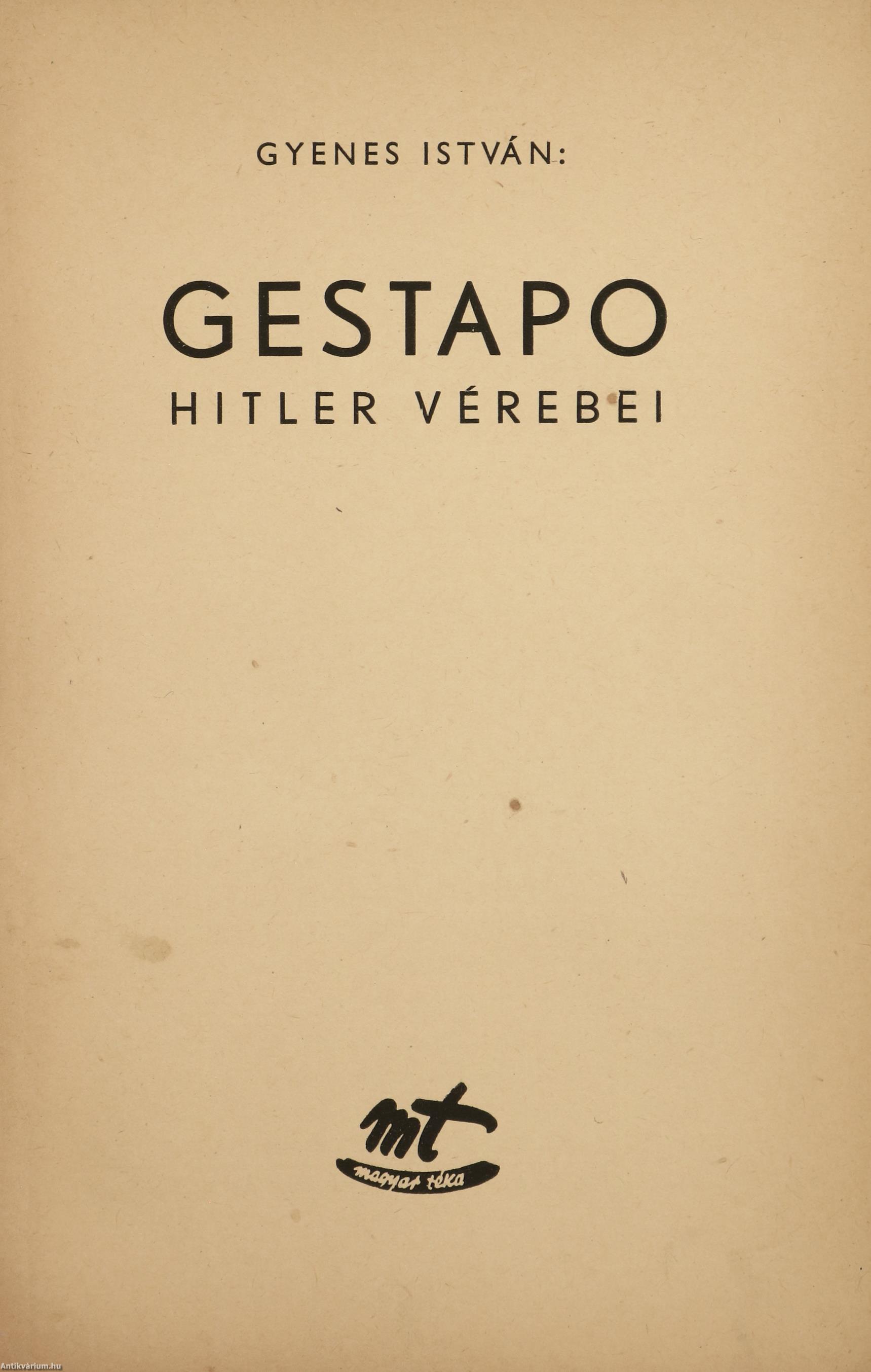 Első kiadás. Gestapo. Hitler vérebei. Írta: Gyenes István.