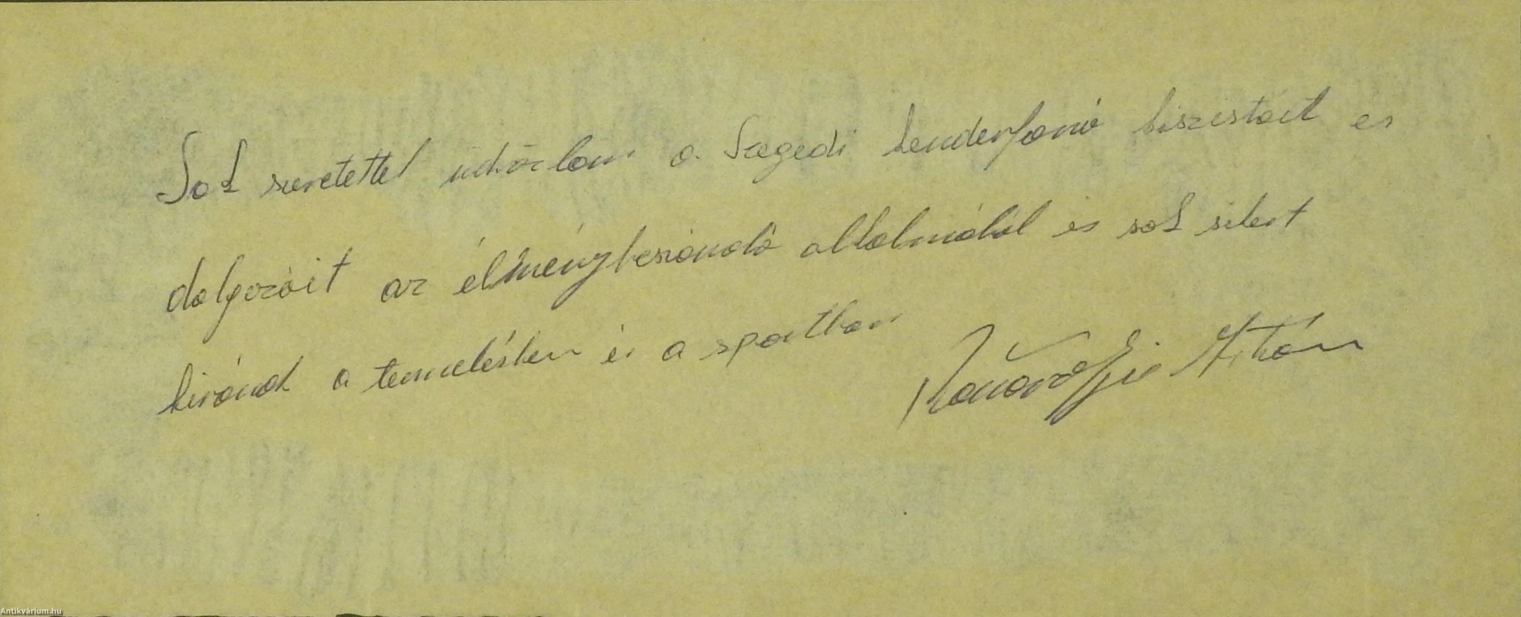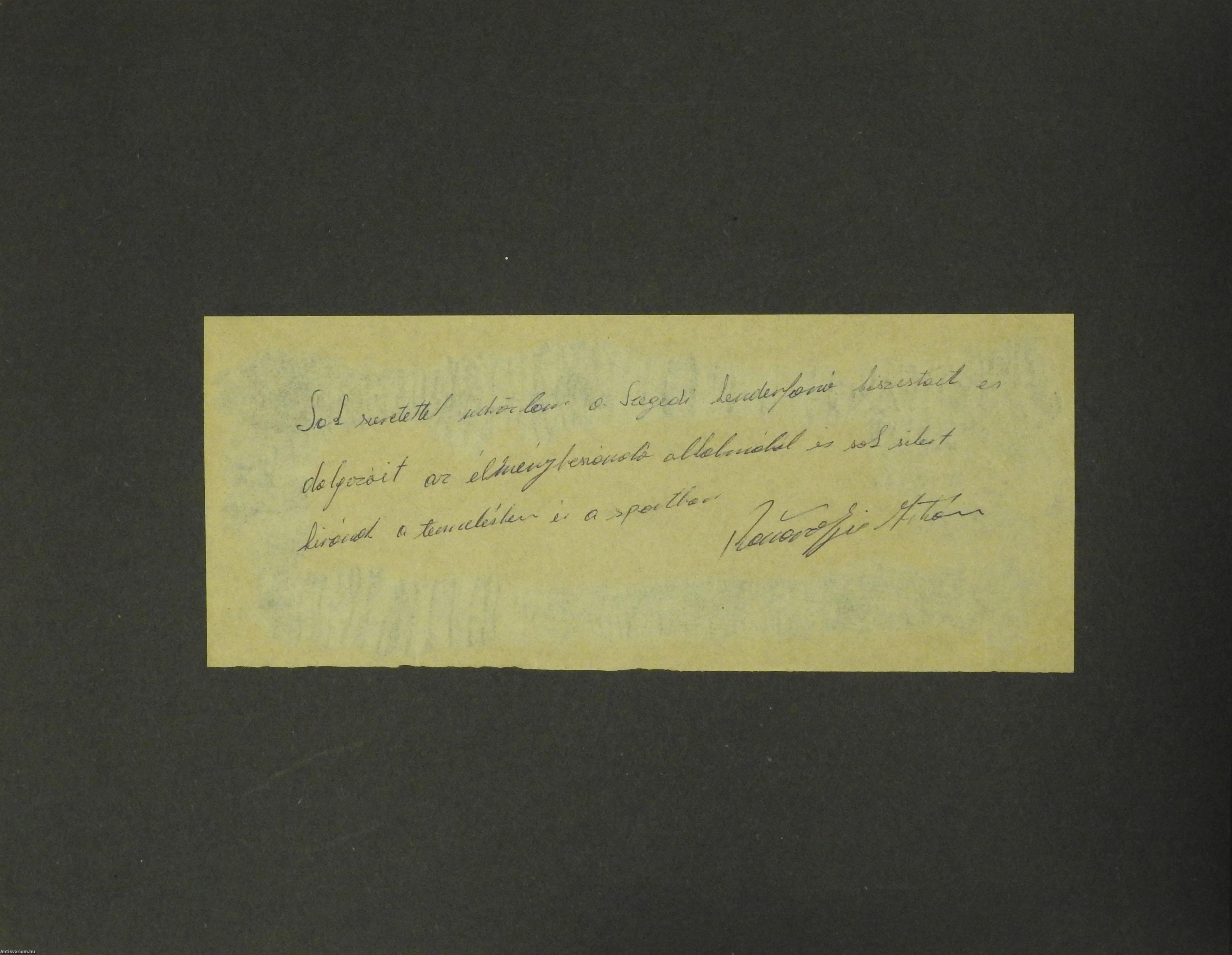 - „Sok szeretettel üdvözlöm a Szegedi Kenderfonó kiszistáit és dolgozóit az élménybeszámoló alkalmából és sok sikert kívánok a termelésben és a sportban Rózsavölgyi István”.