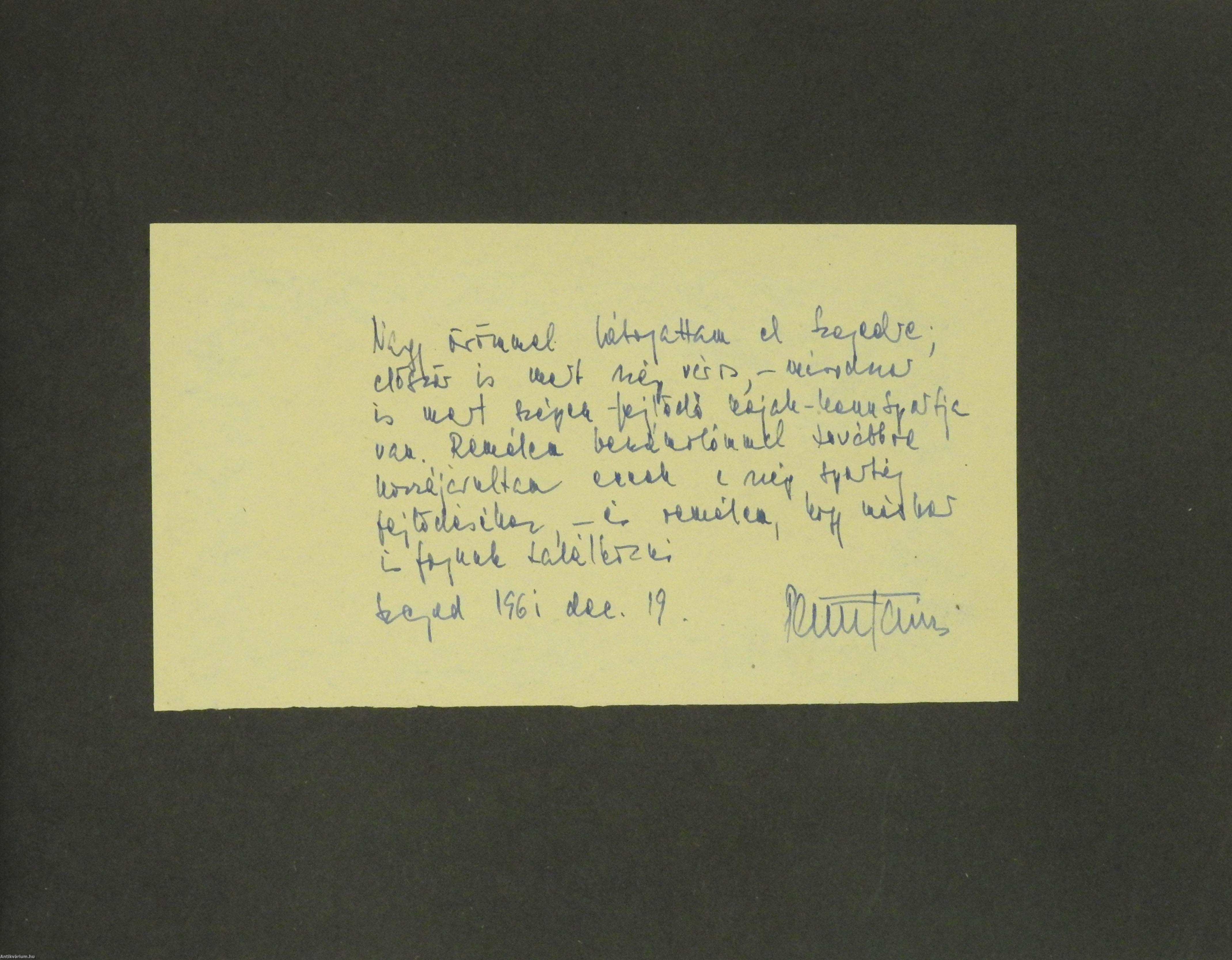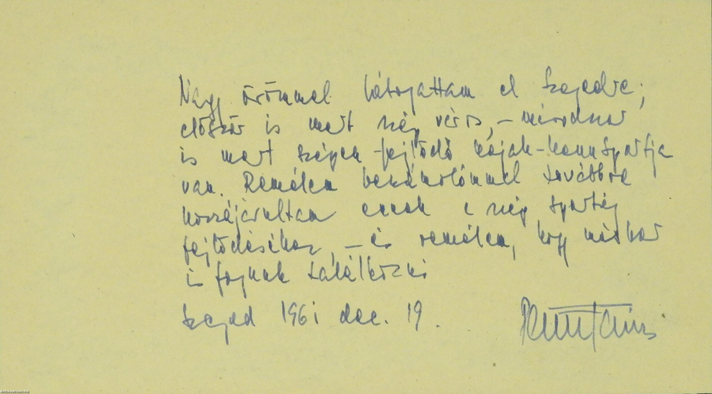 - „Nagy örömmel látogattam el Szegedre; először is mert szép város, - másodszor is mert szépen fejlődő kajak-kenu sportja van. Remélem beszámolómmal továbbá hozzájárultam ennek a szép sportág fejlődéséhez – és remélem, hogy máskor is fogunk találkozni. Szeged 1961 dec. 19. Parti János”