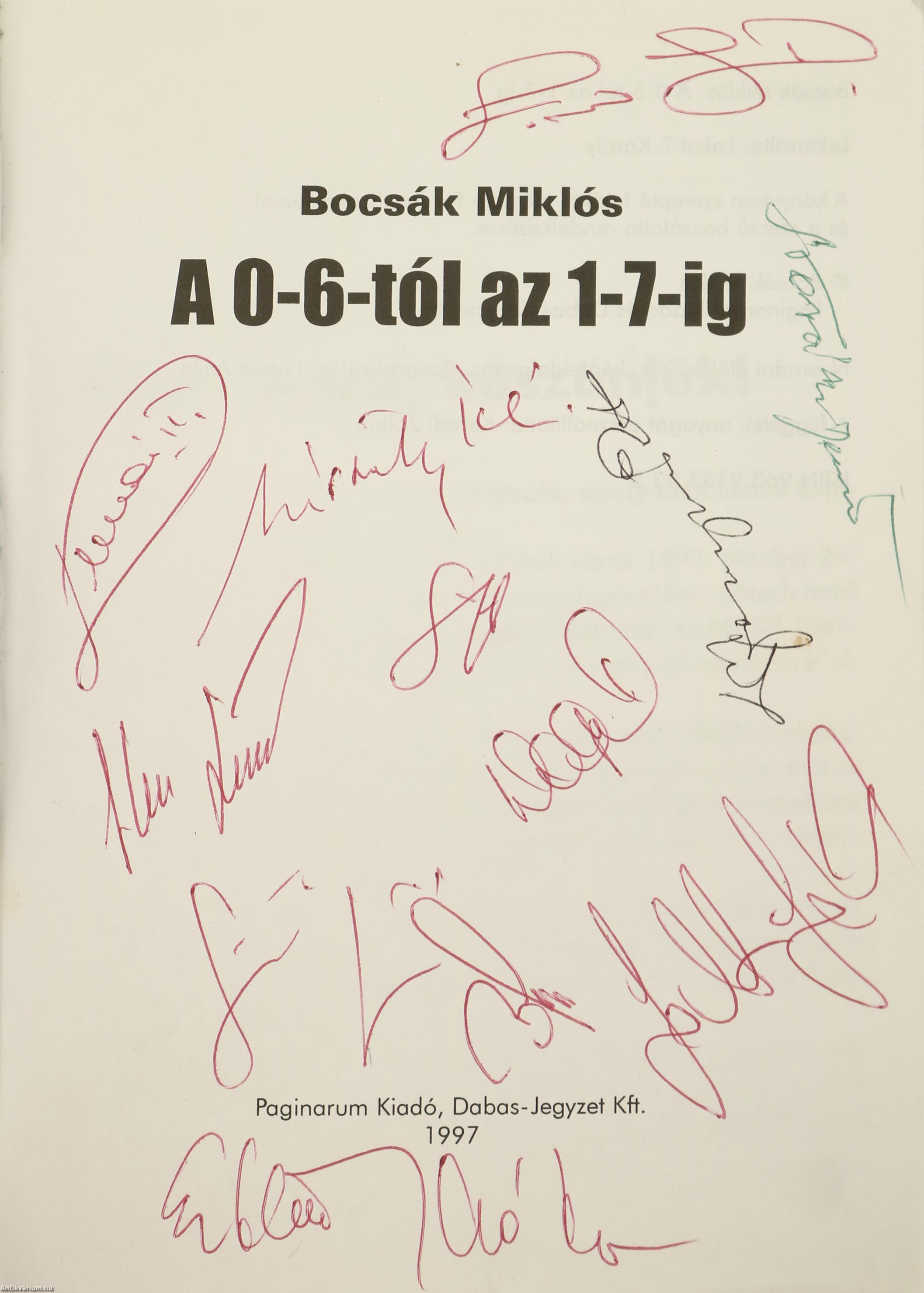 Első kiadás. A 0-6-tól az 1-7-ig. Írta: Bocsák Miklós.