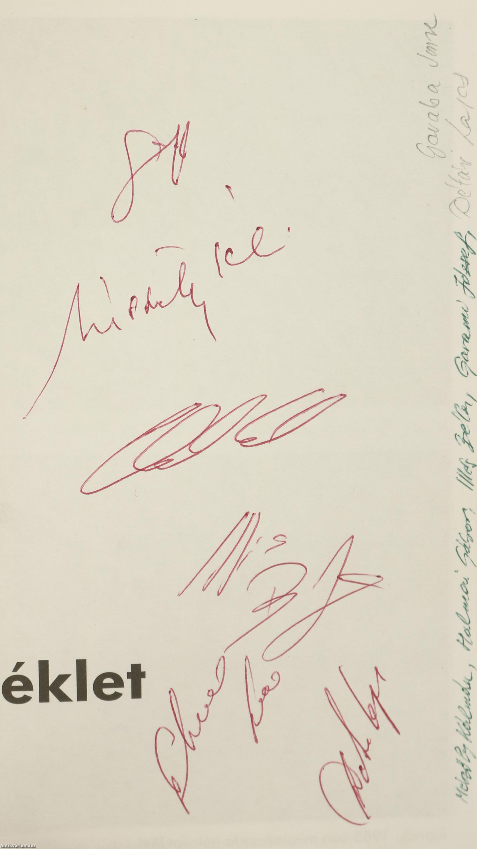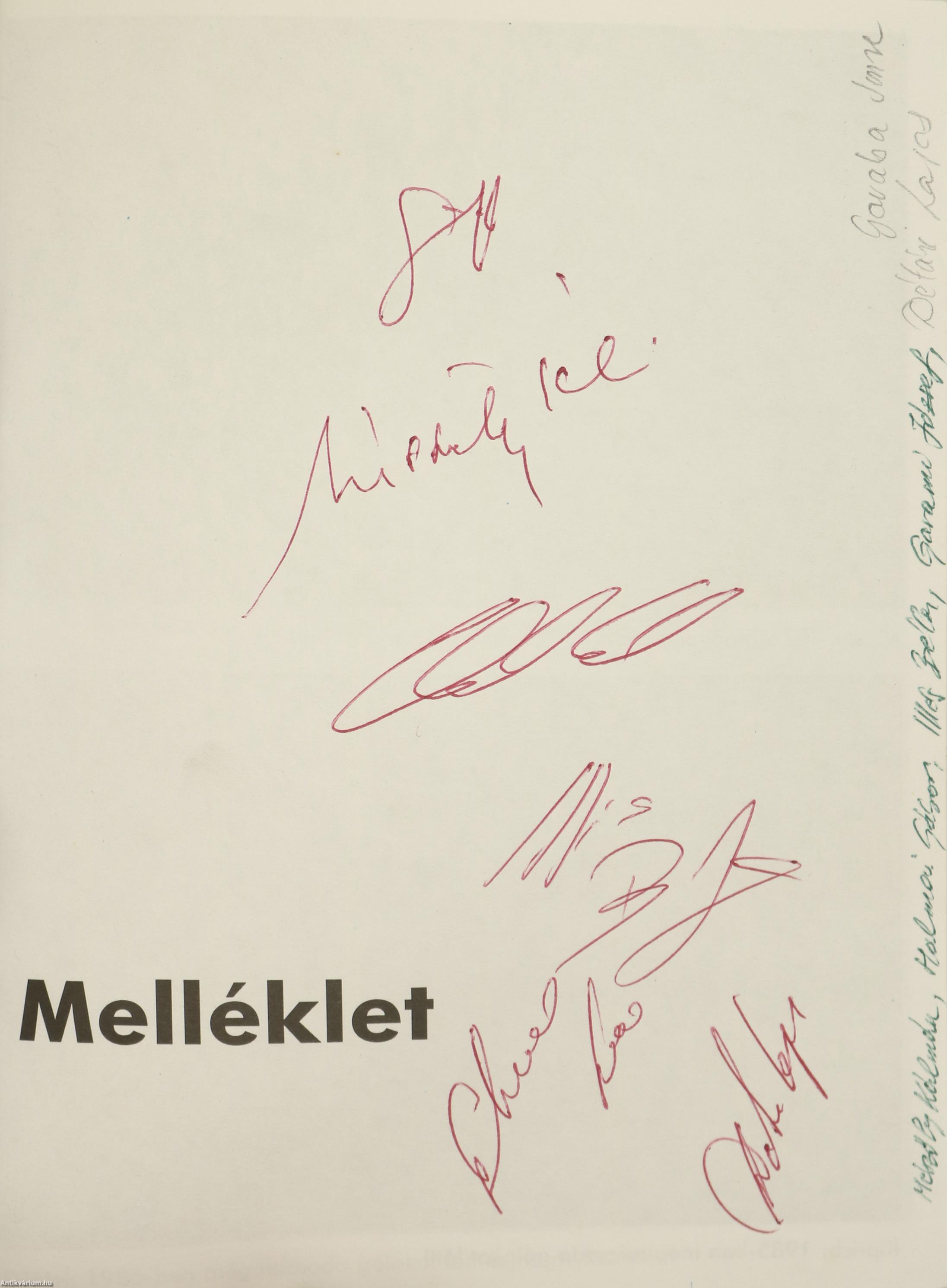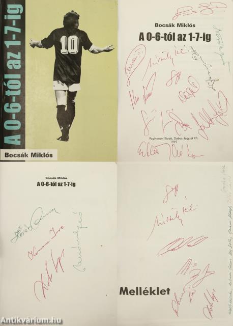 - Mészöly Kálmán (1941-2022) 61-szeres válogatott labdarúgó, edző, a magyar labdarúgó-válogatott volt szövetségi kapitánya. /Aláírása a címlapon és az első képmelléklet verzóján látható./