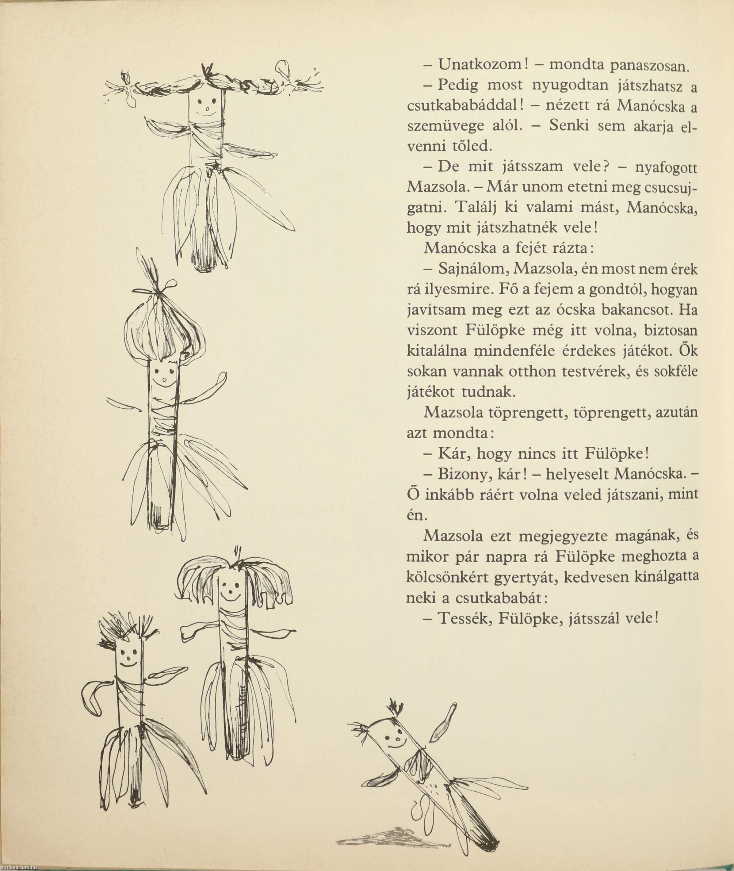 Manófalvi Manó, a madárijesztők barátja egy szép napon födél nélkül maradt. Szerencsére talált a mezőn egy jókora sütőtököt, aminek a cinkék már kivájták a belét. Csinosan berendezte, dundi szalmazsákot készített magának, jó kis karosszéket, és lámpagyújjtás után vidáman olvasott újságot. Egyszer csámcsogást hallott kintről. Egy induri-pinduri malac rágta a házat. Ugye ti már tudjátok, ki volt ez az induri-pinduri kismalac? Hát Mazsola! Aki persze ott is maradt mindjárt a kis tökházban, és ha meghallgatjátok a mesét, megtudjátok, mi minden történt Mazsolával, aki még a tévében is szerepelt.