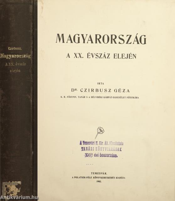 Első kiadás. Magyarország a XX. évszáz elején. Írta: Dr. Czirbusz Géza k. r. főgymn. tanár s a Délvidéki Kárpát-Egyesület főtitkára.