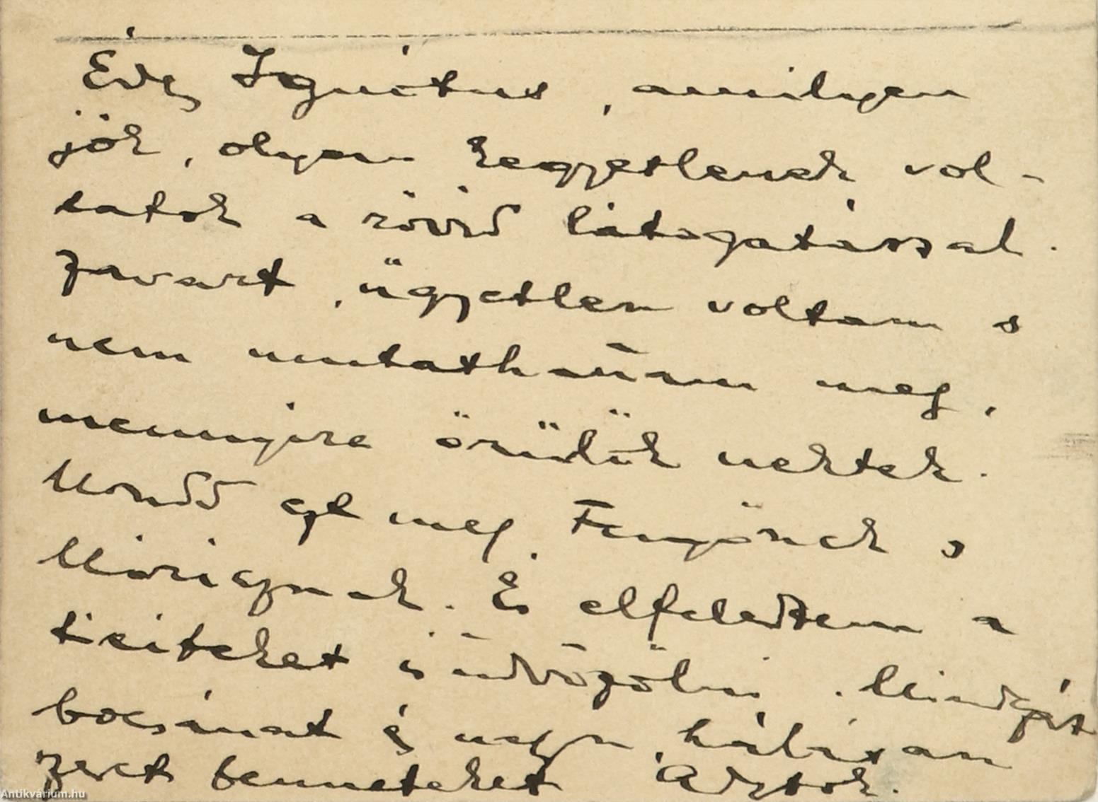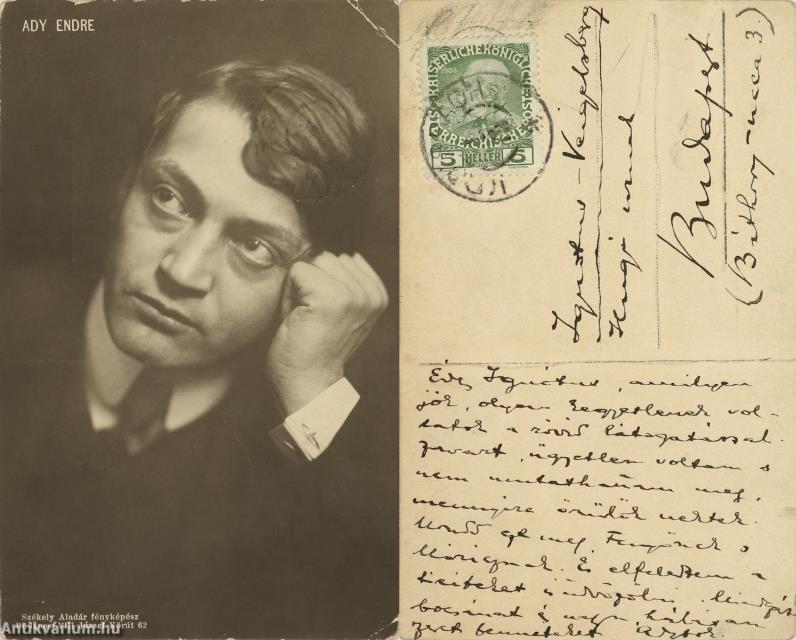 Édes Ignótus, amilyen jók, olyan kegyetlenek voltatok a rövid látogatással. Zavart, ügyetlen voltam s nem mutathattam meg, mennyire örülök nektek. Mondd ezt meg Fenyőnek s Móricznak. És elfeledtem a tieiteket is üdvözölni. Mindezért bocsánat és nagyon hálásan szeret benneteket Adytok