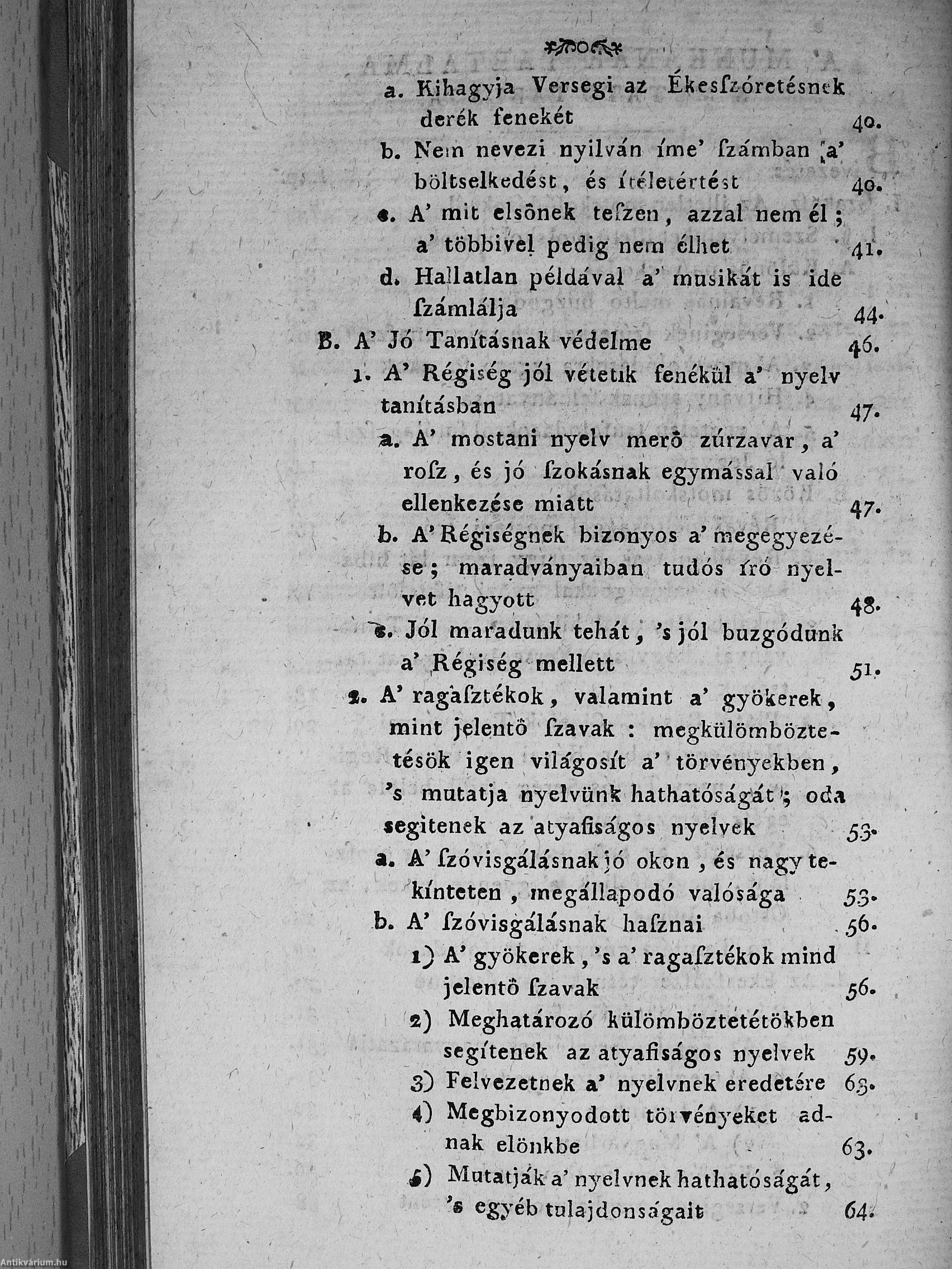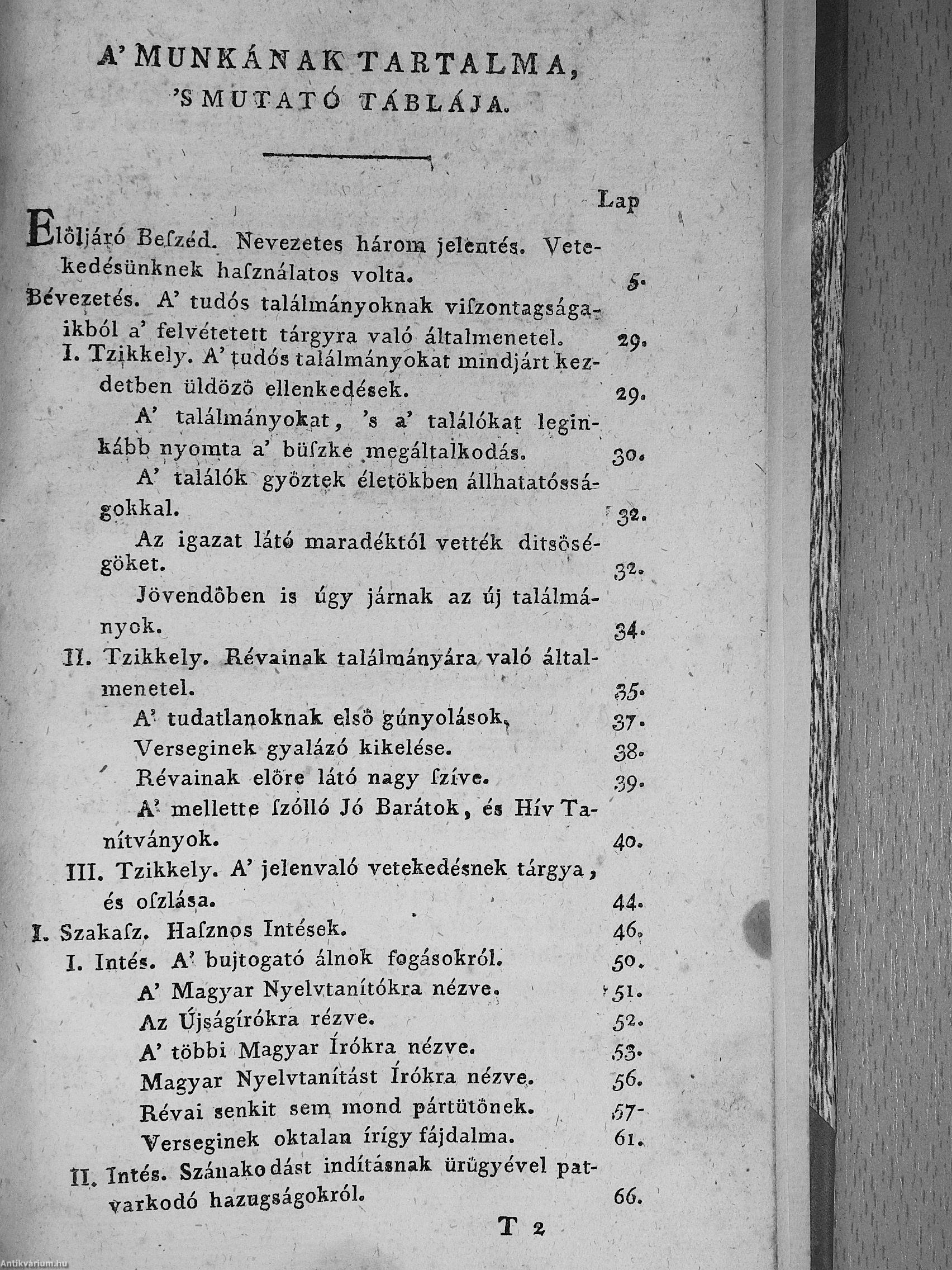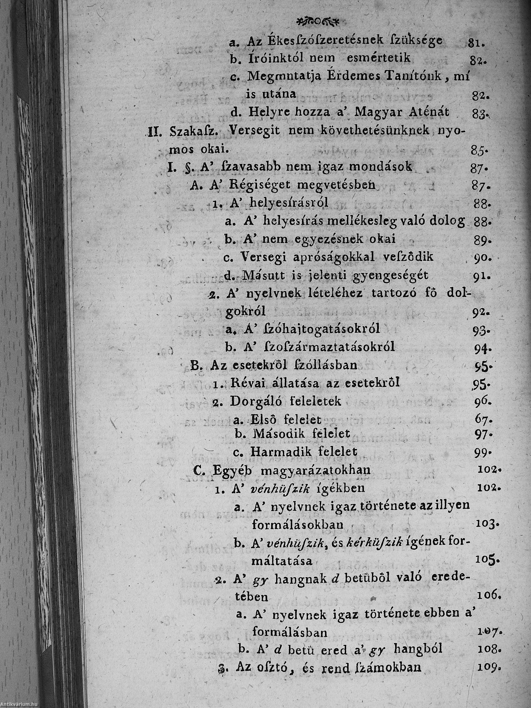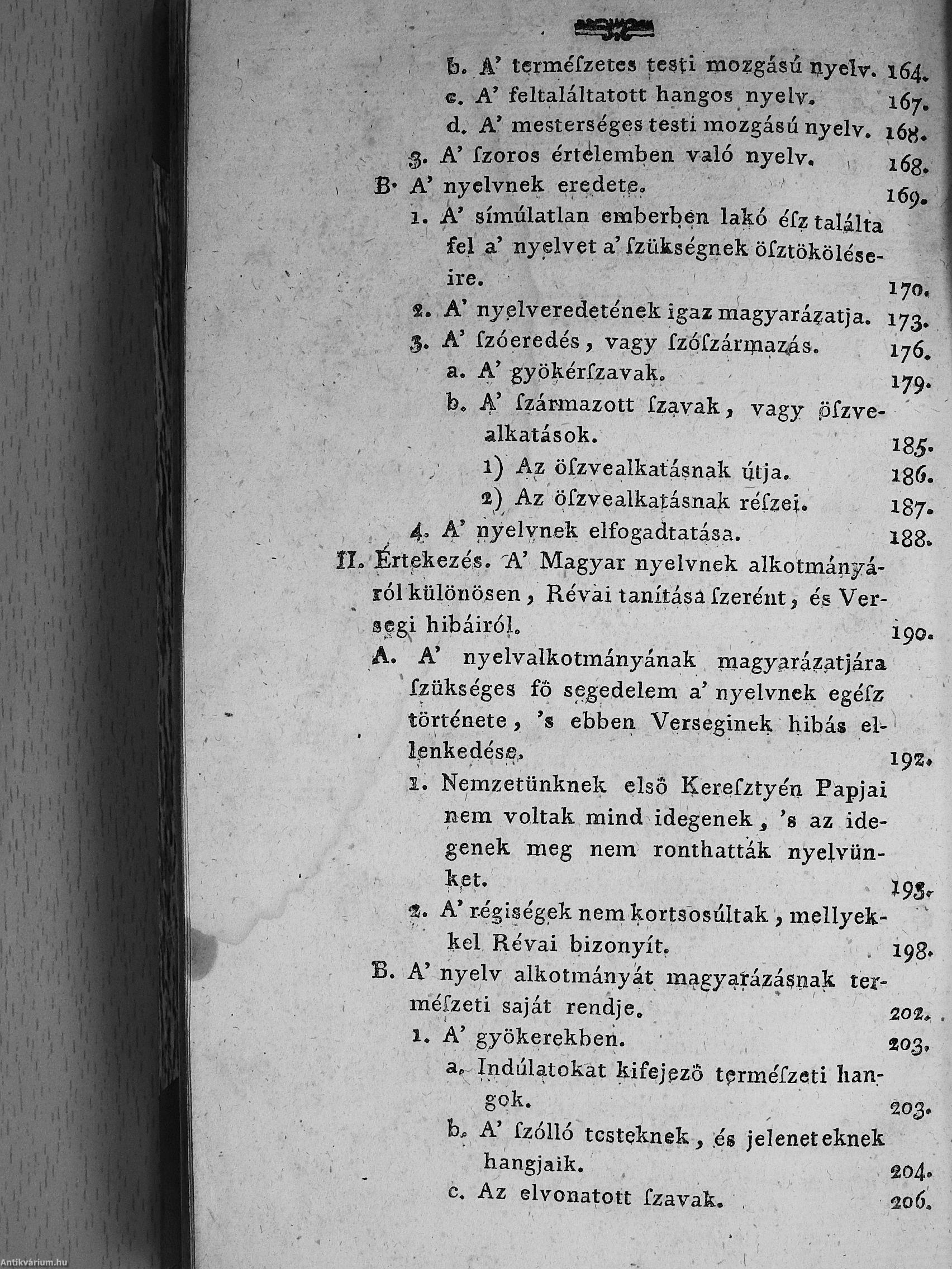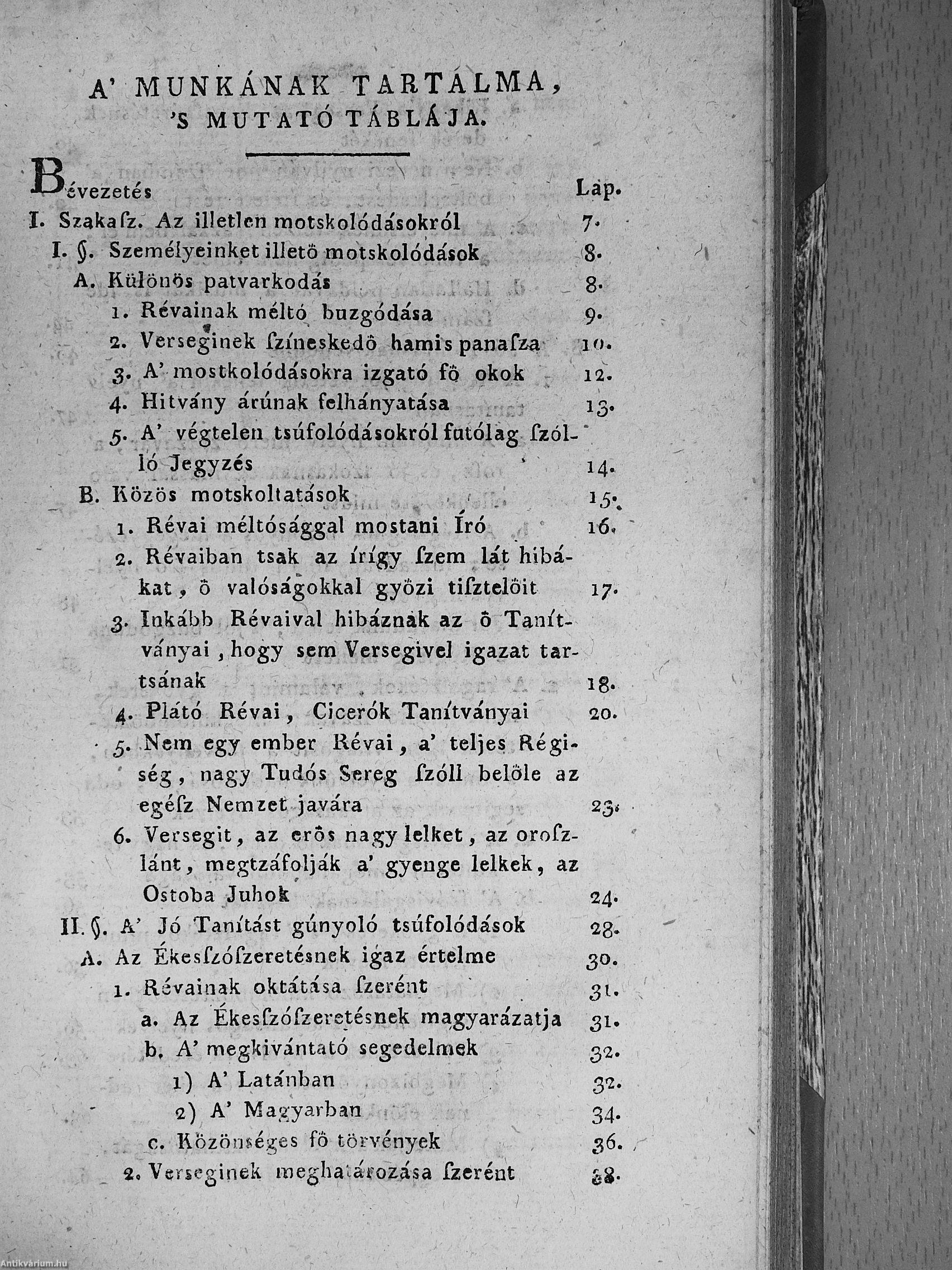 2.) Versegi Ferentznek tisztasággal kérkedő tisztátalan magyarsága. Mellyet nyilvánvaló egyenes okokkal tisztán megmutat Révai Miklósnak hív tanítványa, 's igaz jó barátja, világosvári Miklósfi János [Révai Miklós].
