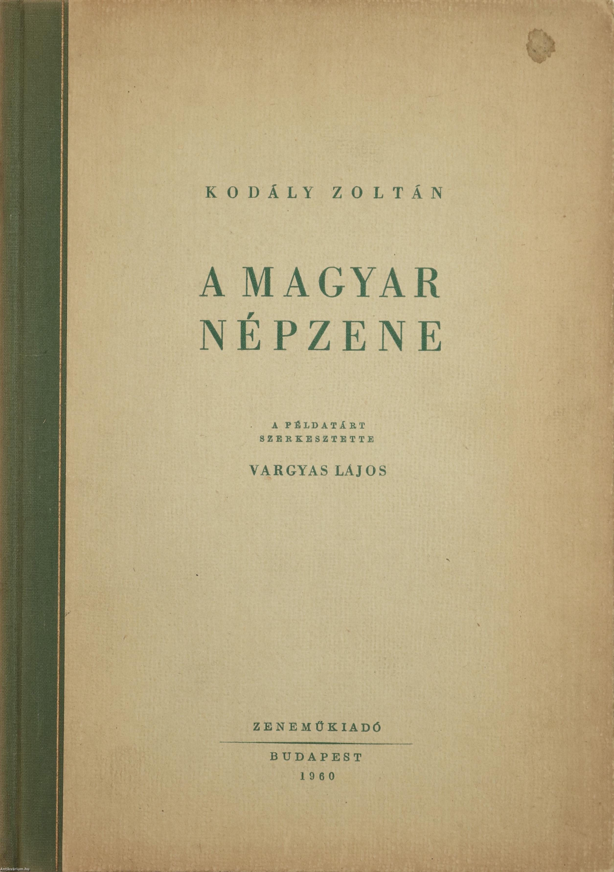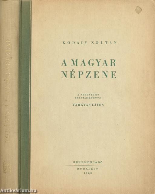 Kiadói félvászon kötésben lévő példány feliratos címfedéllel, aranyozott feliratos könyvgerinccel, tiszta belívekkel, hiánytalan állapotban. Kodály Zoltán (Kecskemét, 1882. december 16. – Budapest, 1967. március 6.) háromszoros Kossuth-díjas, világhírű magyar zeneszerző, zenetudós, népzenekutató és zenepedagógus. Bartók Bélával együtt a 20. századi magyar zenei élet és zeneművészet meghatározó, nemzetközileg is elismert alakja. A róla elnevezett Kodály-módszer az iskolai ének-zenei nevelés módszertanát világszerte meghatározó zenepedagógiai paradigmává vált.