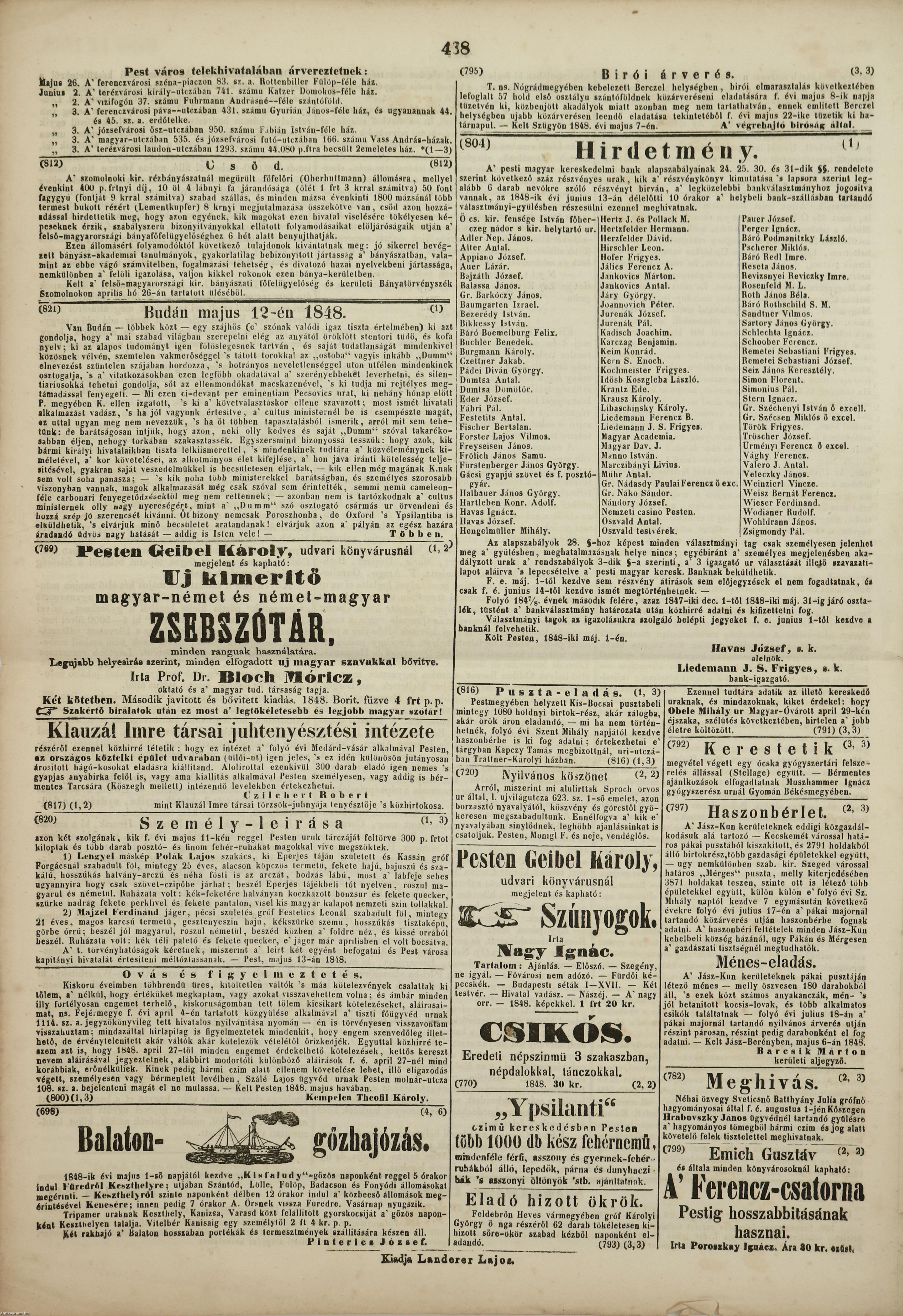 Pest, 1848, Landerer Lajos, [435]-438 p.