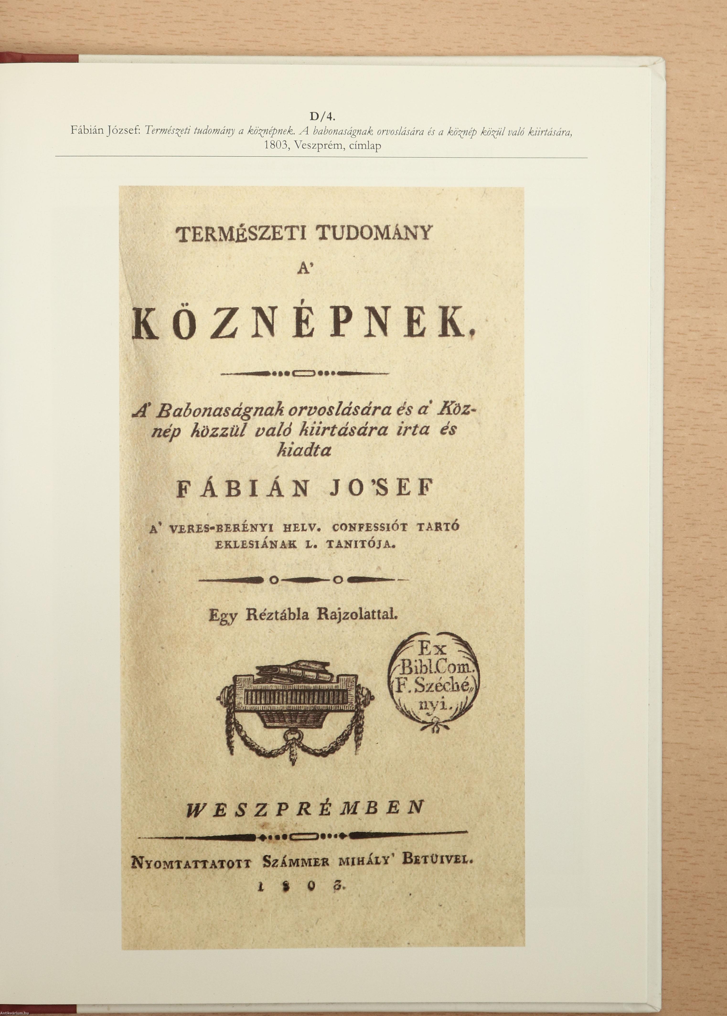 | Fábián József: Természeti tudomány a köznépnek. A babonaságnak orvoslására és a köznép közül való kiirtására, 1803, Veszprém | 164 |