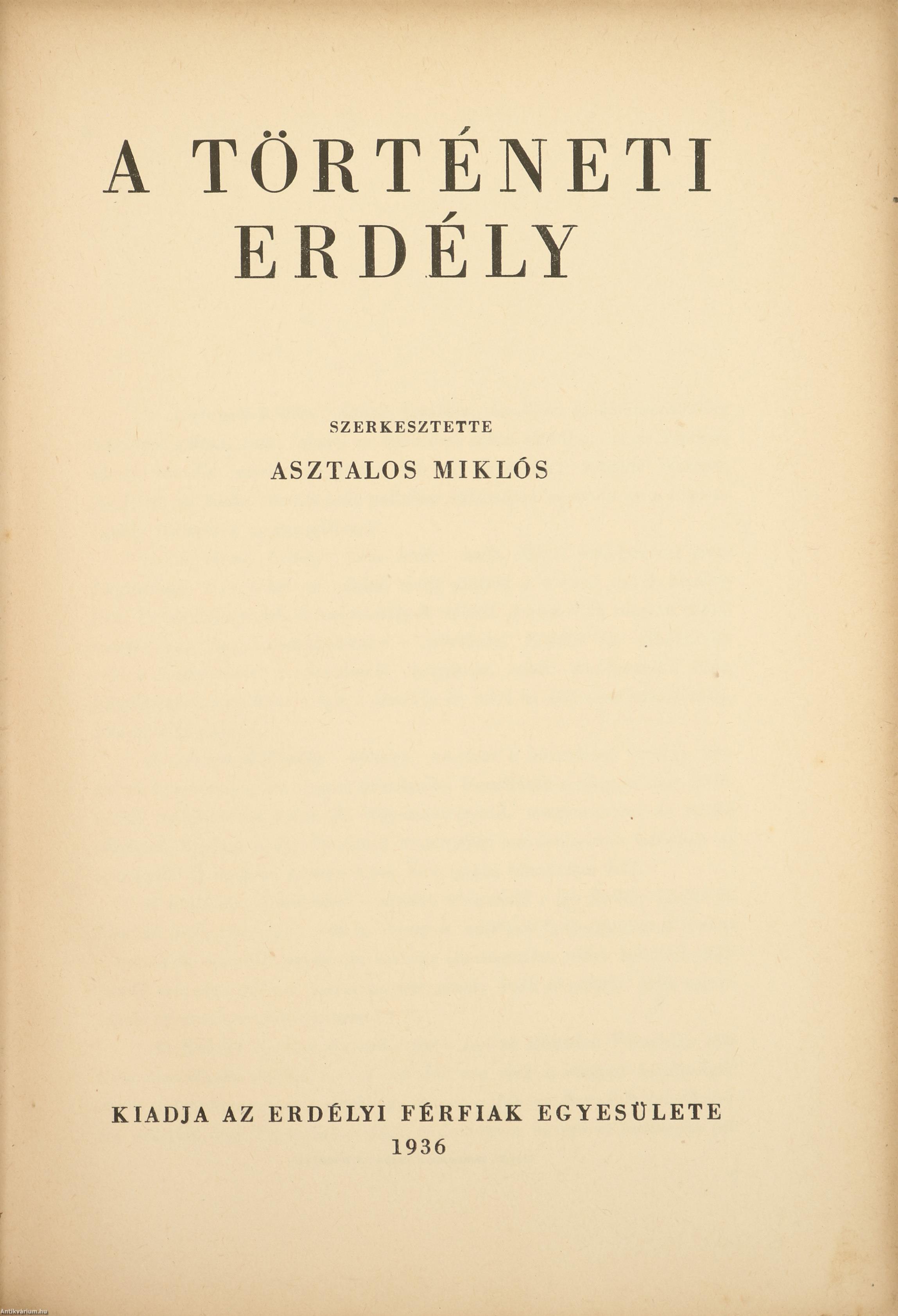 Első kiadás. A történeti Erdély. Szerkesztette: Asztalos Miklós.