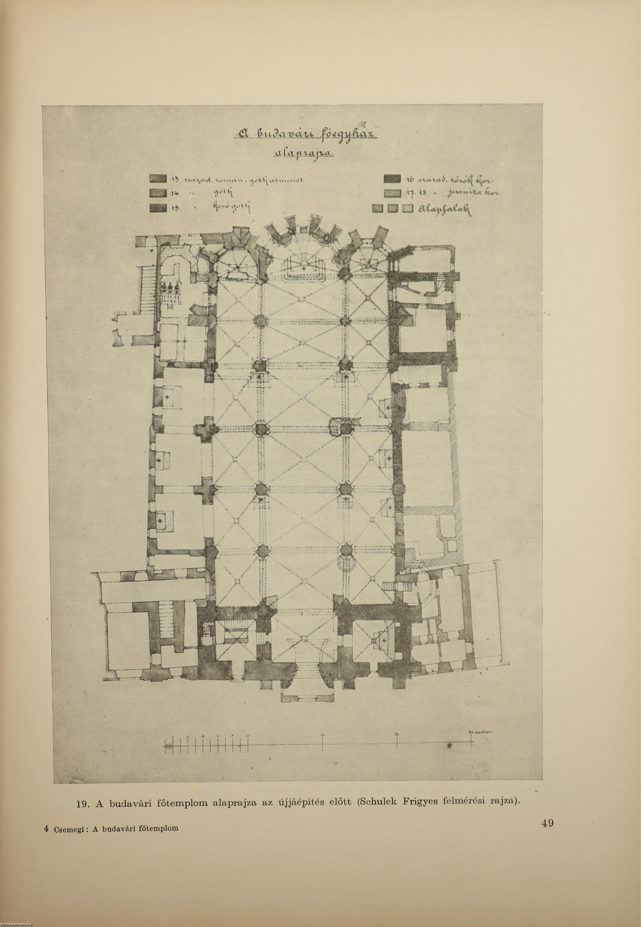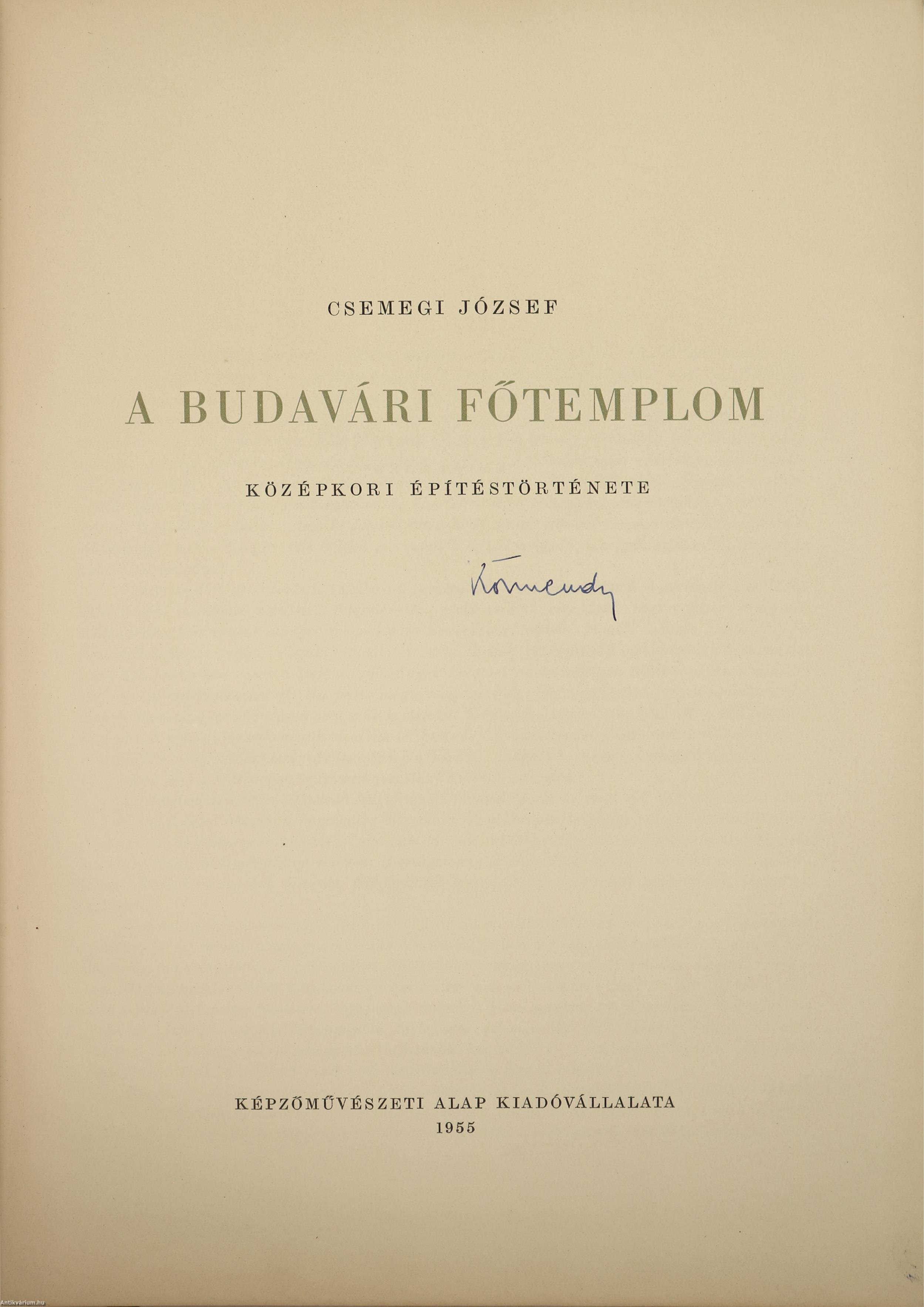 Első kiadás. A Magyar Műemlékek c. sorozatban (számjelzés nélkül) megjelent mű. A budavári főtemplom középkori építéstörténete. Írta: Csemegi József.