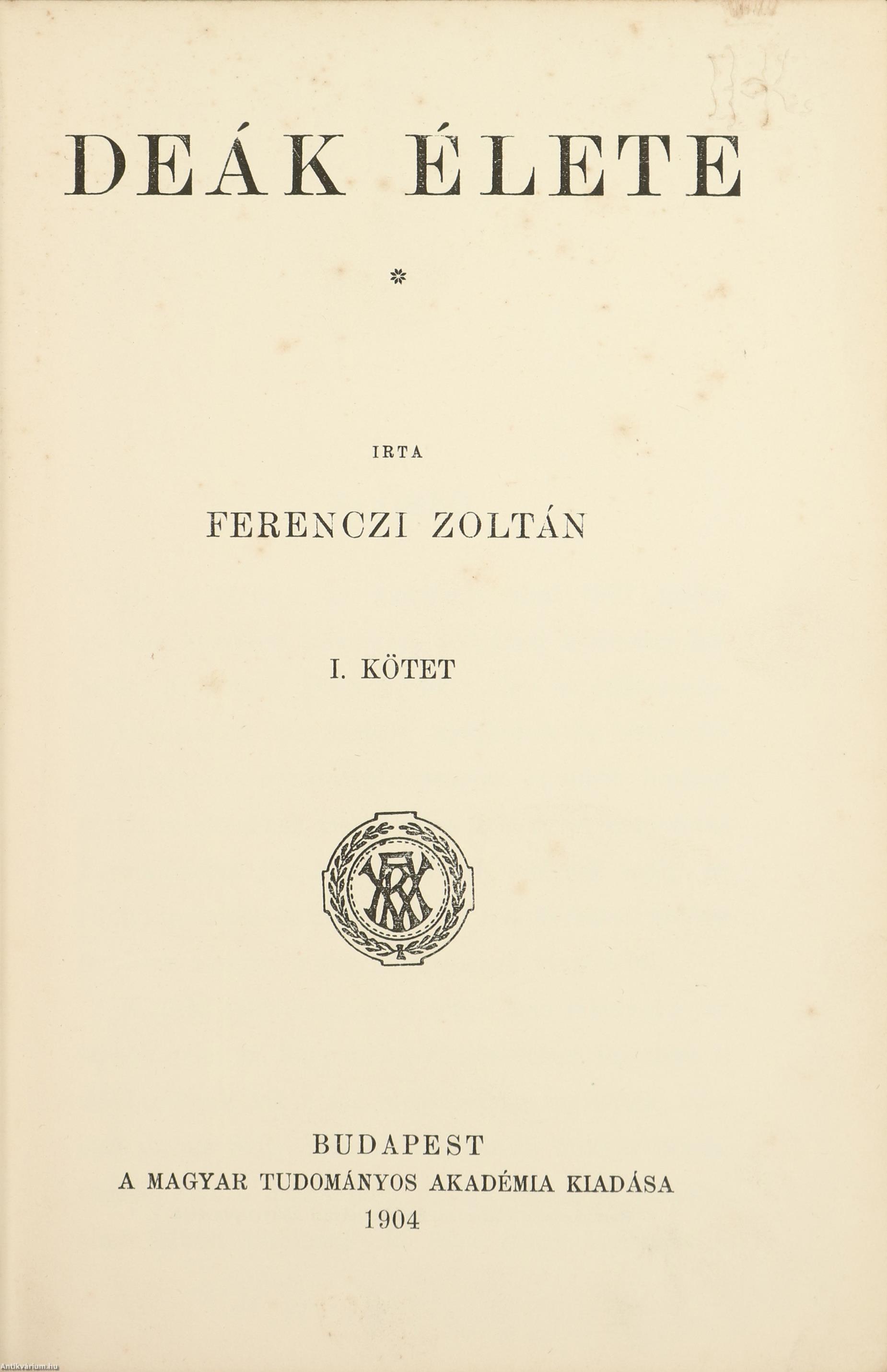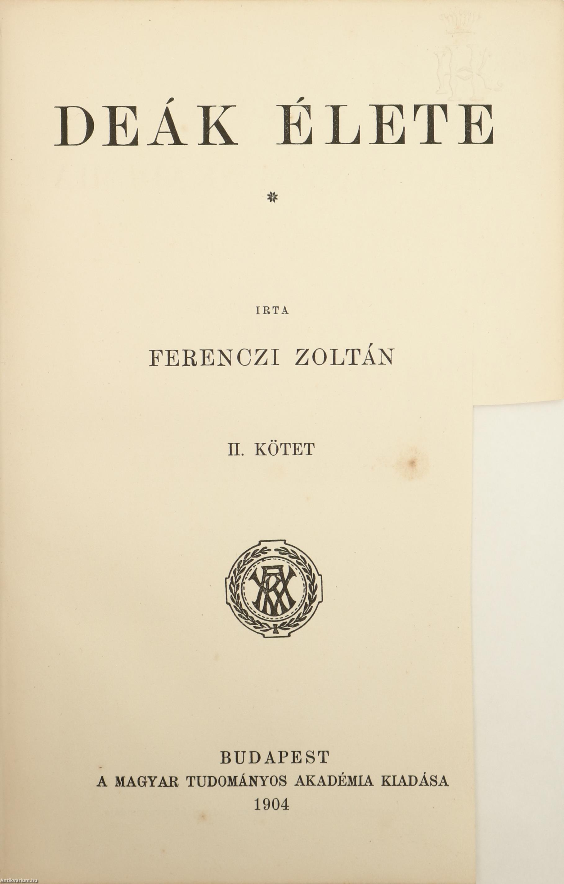 | Ötödik fejezet. Deák második felirata | 327-368 |