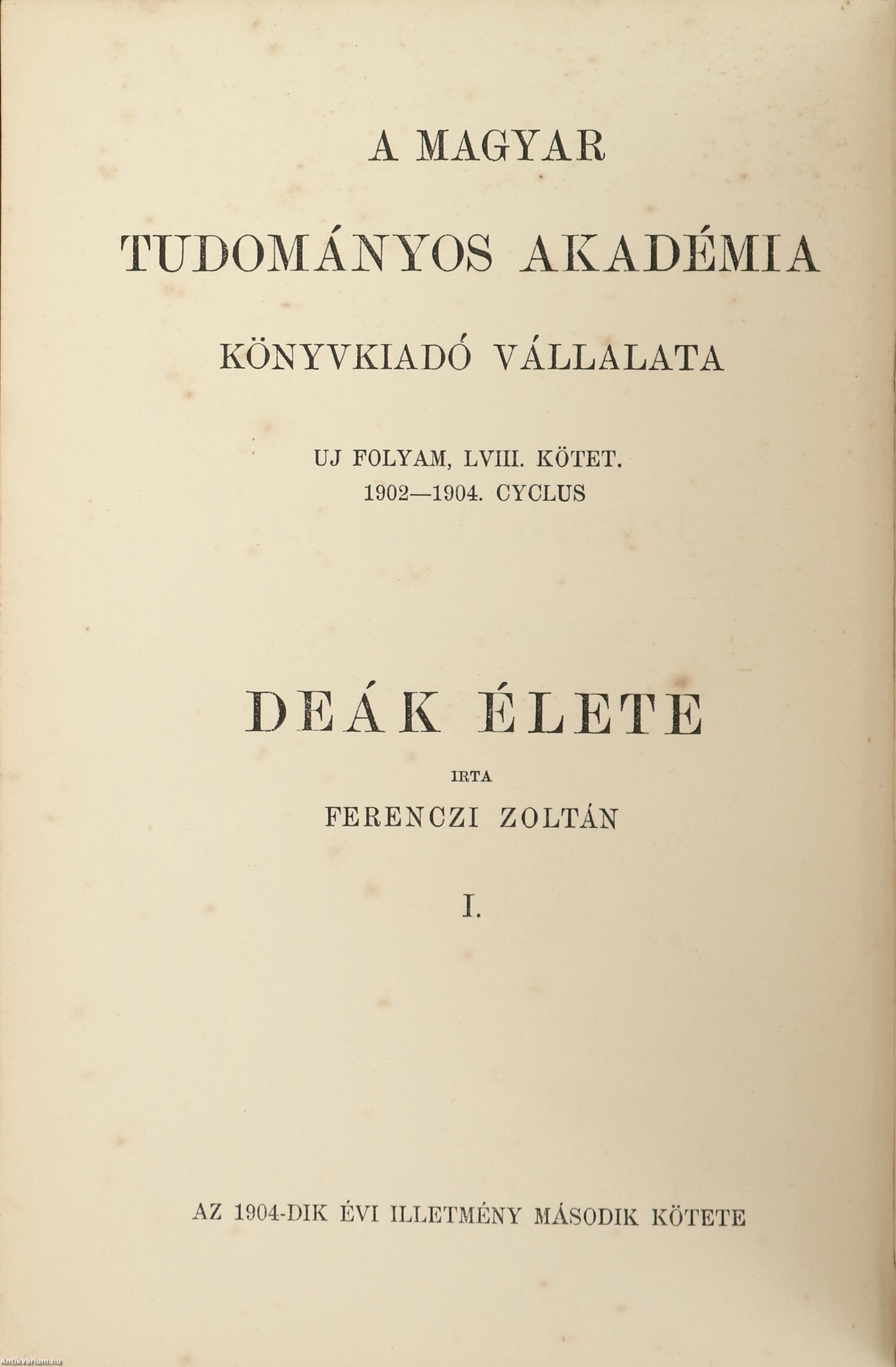 | Hatodik fejezet. Deák és az urbéri törvény | 96-118 |